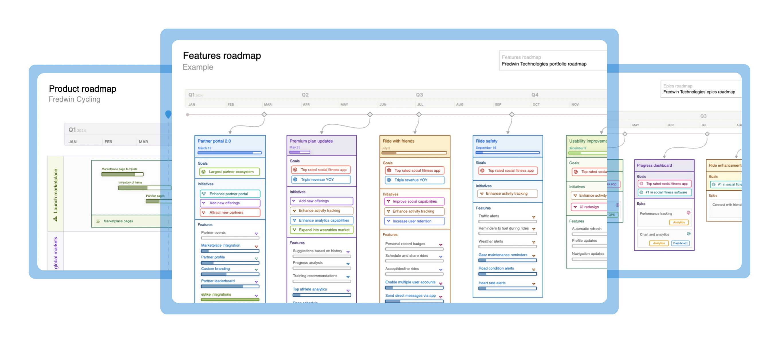 Do a rough roadmap sketch. See plans on a feature, epic, release, or portfolio level before building a robust timeline. Get going fast with roadmapping templates: