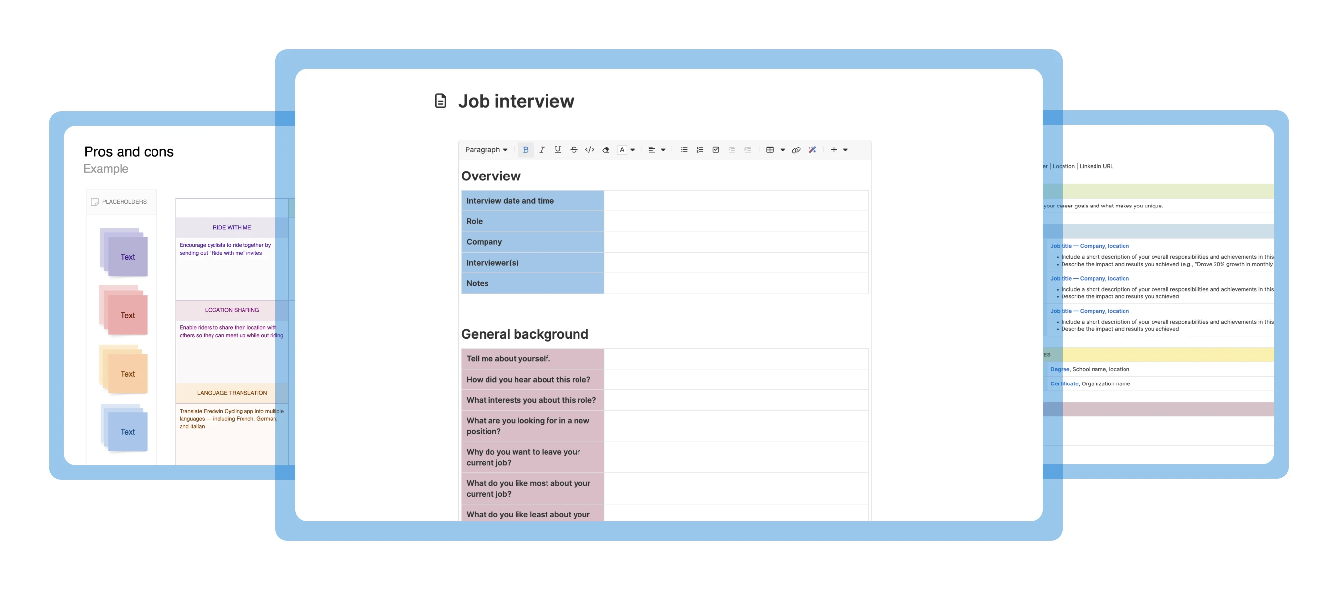 These conversations influenced many of the features we released — such as document imports, inline commenting, and shareable links. But they also shaped our approach to developing templates. We learned that many of you rely on these thought-starters to get going faster, all while bringing more structure to the way you collaborate.