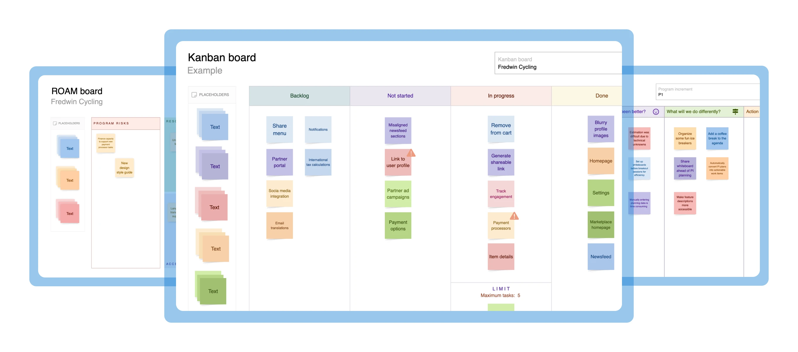 If there is another template we should add to our library, let us know (or feel free to create it yourself). And remember: Your whiteboard is just the start of what you can do. You can convert your ideas, sketches, and sticky notes to real work in Aha! Roadmaps. Or try the reverse on your reports for a little more freedom to think. More features to come.