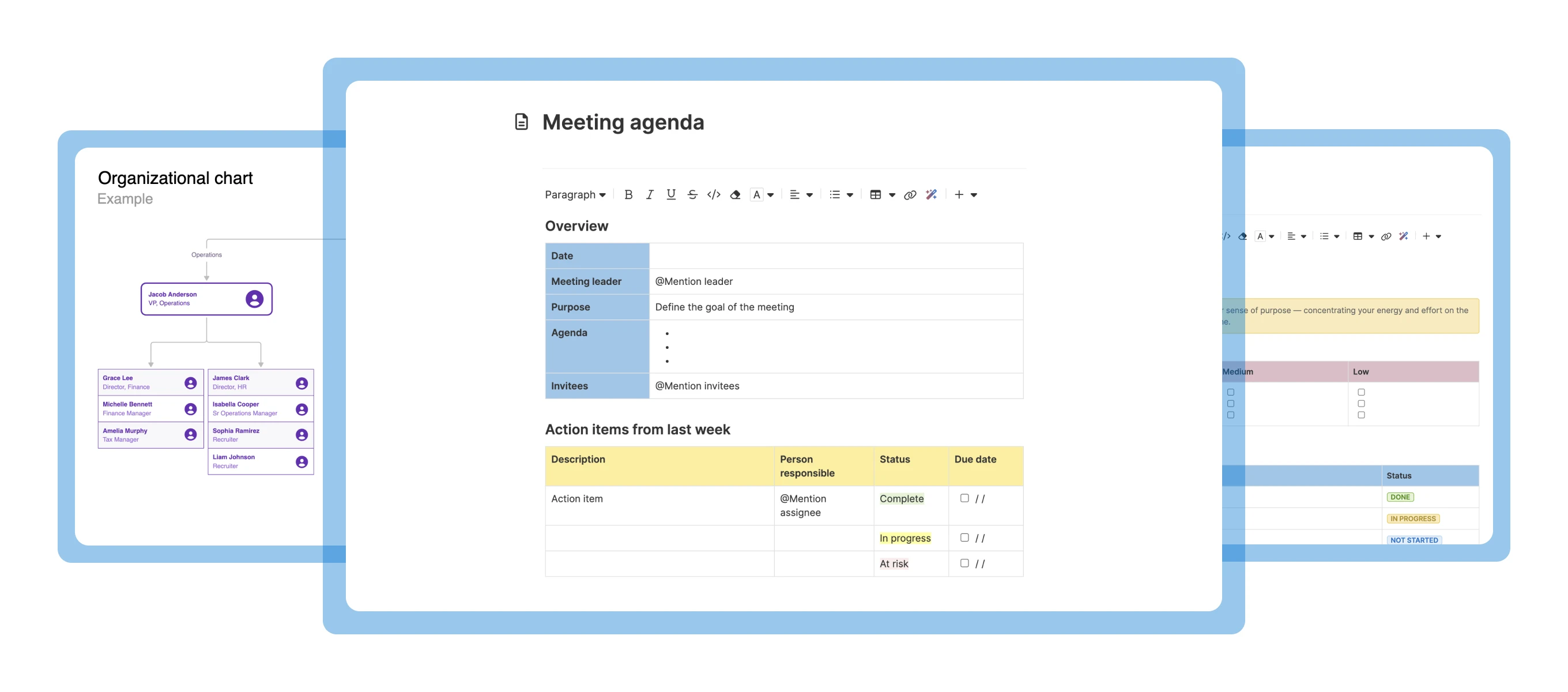 Add some structure to your meetings and internal processes — plus a splash of color. Stay on track with templates for teamwork: