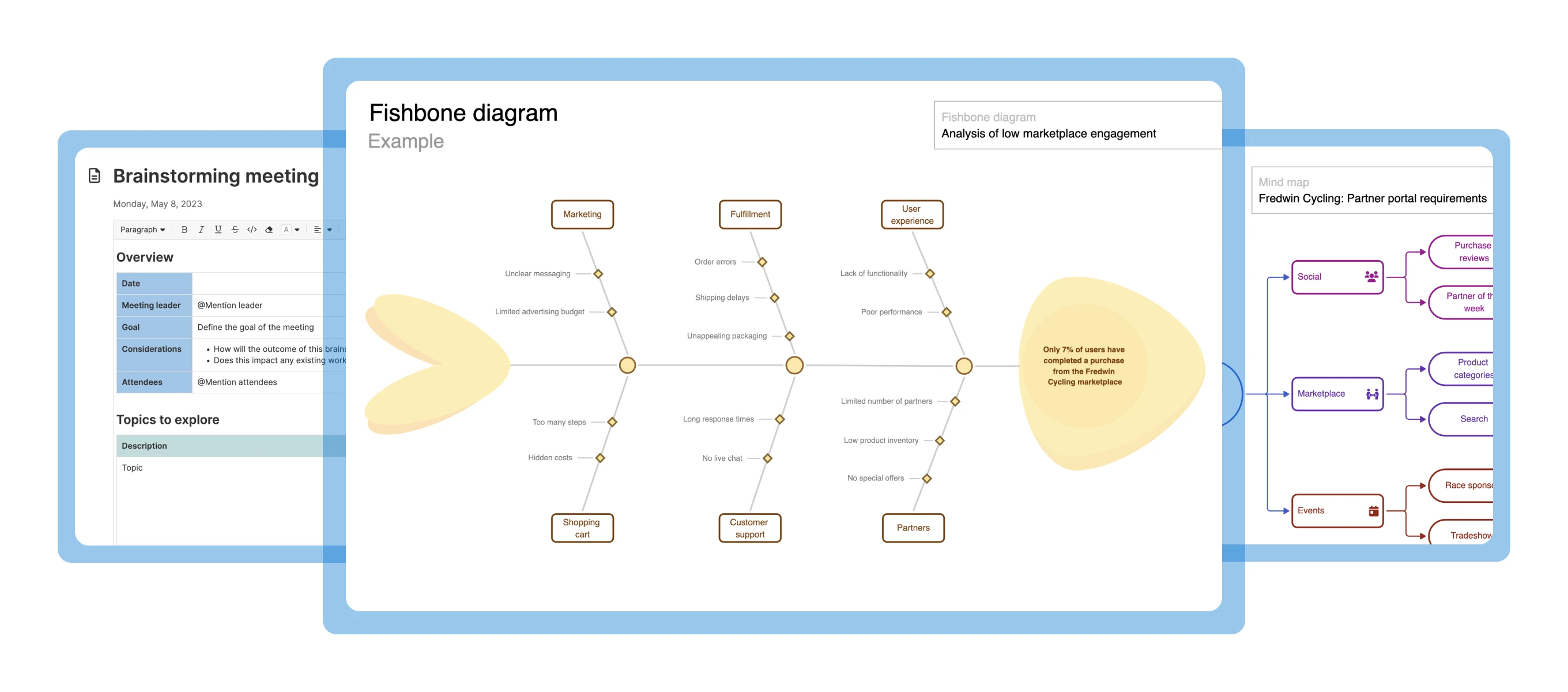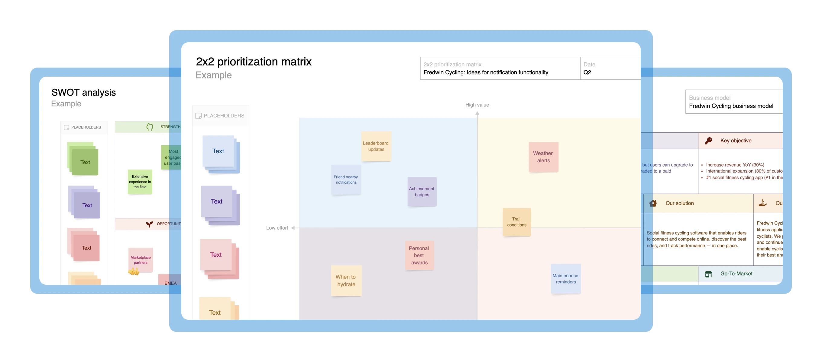 Get your creativity flowing. With the right frameworks, it is easier to diagram concepts and innovate together. Think freely with templates for ideation: