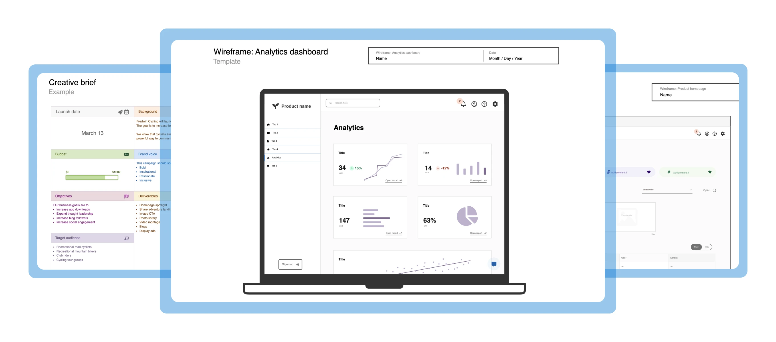 Get aligned on design. Initiate visual concepts with these templates, then share your work to get feedback from the UX or creative team:
