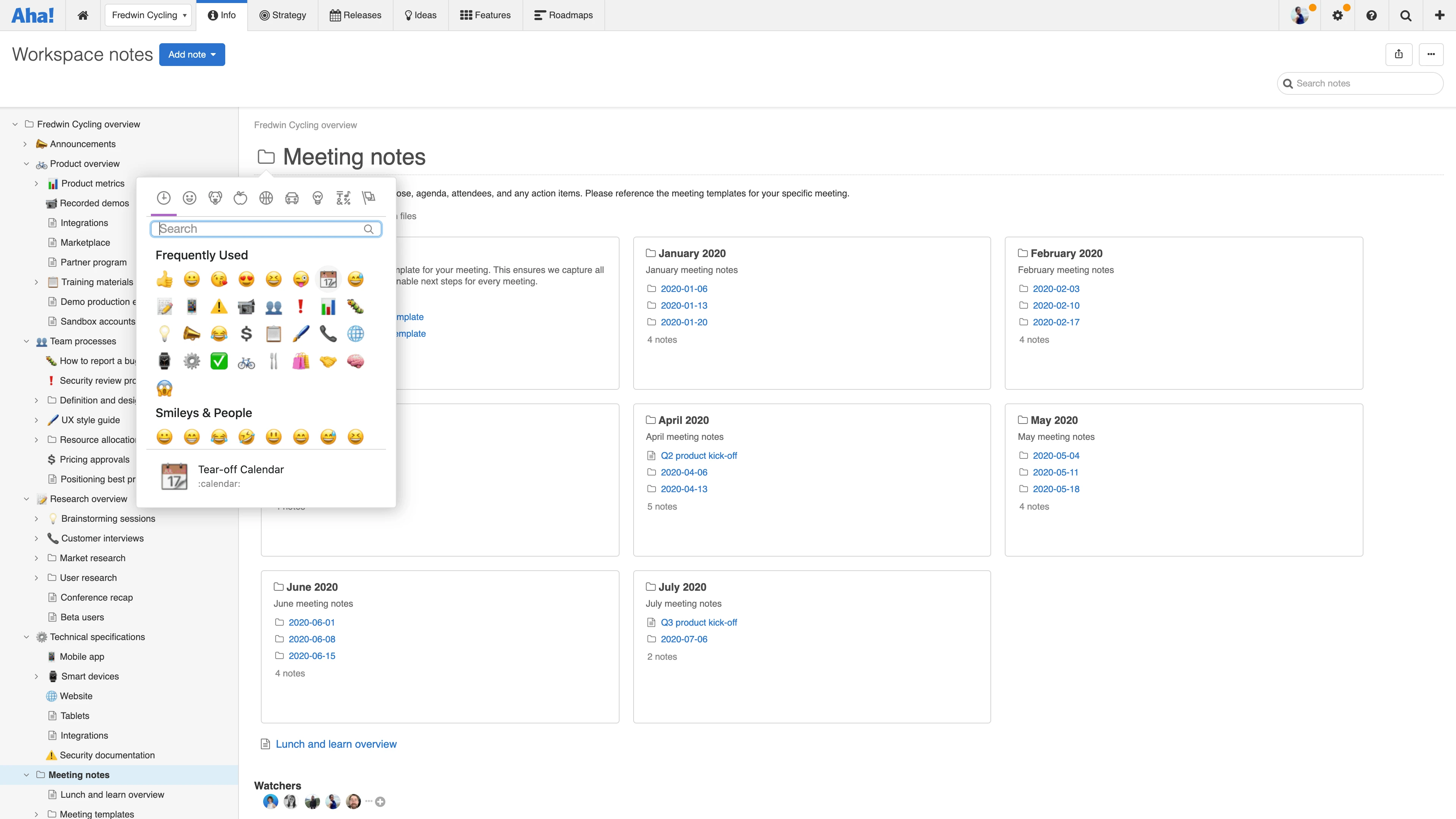 Our team at Aha! loves using notes for unstructured information. Team members can easily add and find documentation from meeting agendas to important processes. Capturing information in one place is even more critical when you work remotely. But internal documentation can become unwieldy as teams and programs grow.