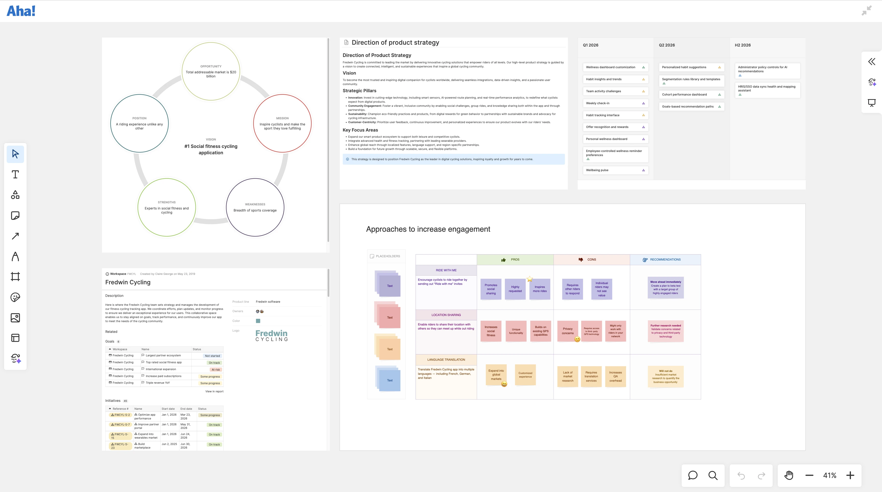 Every view you embed is already in Aha! software — nothing to import, nothing to keep in sync. The more your whiteboard reflects what is actually planned, the more useful it becomes as a place to explore new concepts and make decisions.