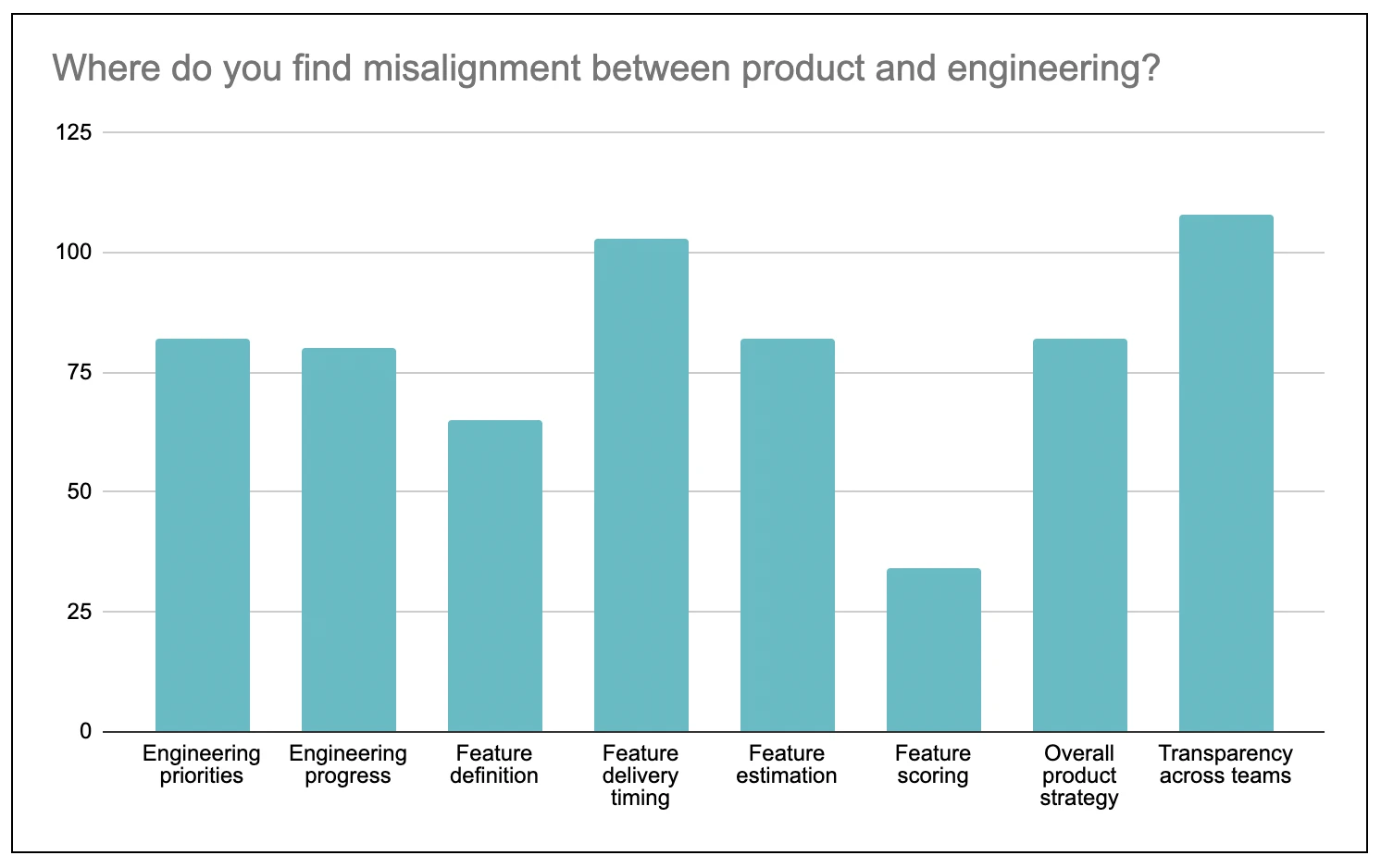 Transparency across teams and feature delivery timing were top areas where product teams struggle to find alignment.