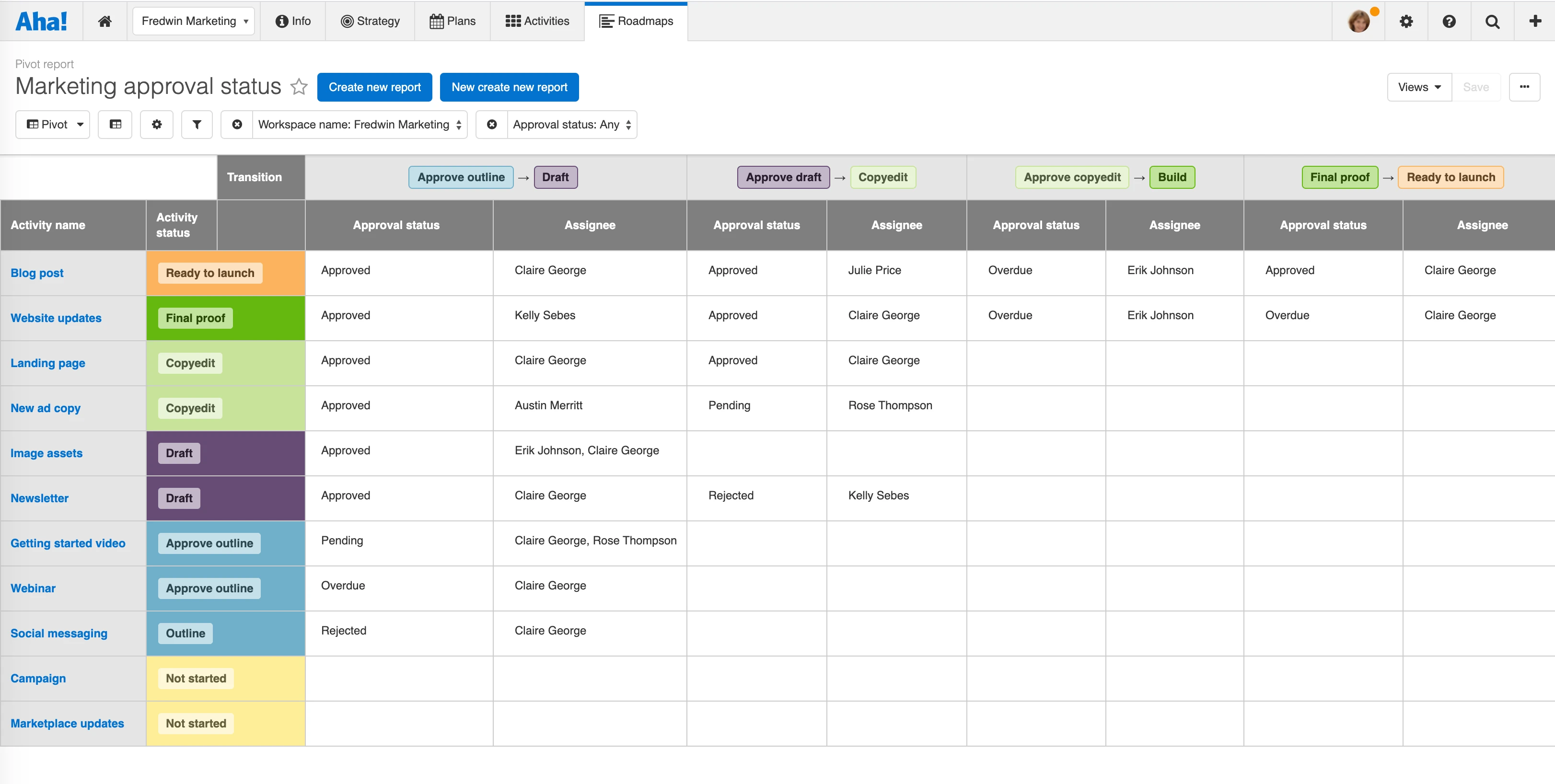 Quickly create a pivot report using the link in the workflow approvals section of any Aha! record.