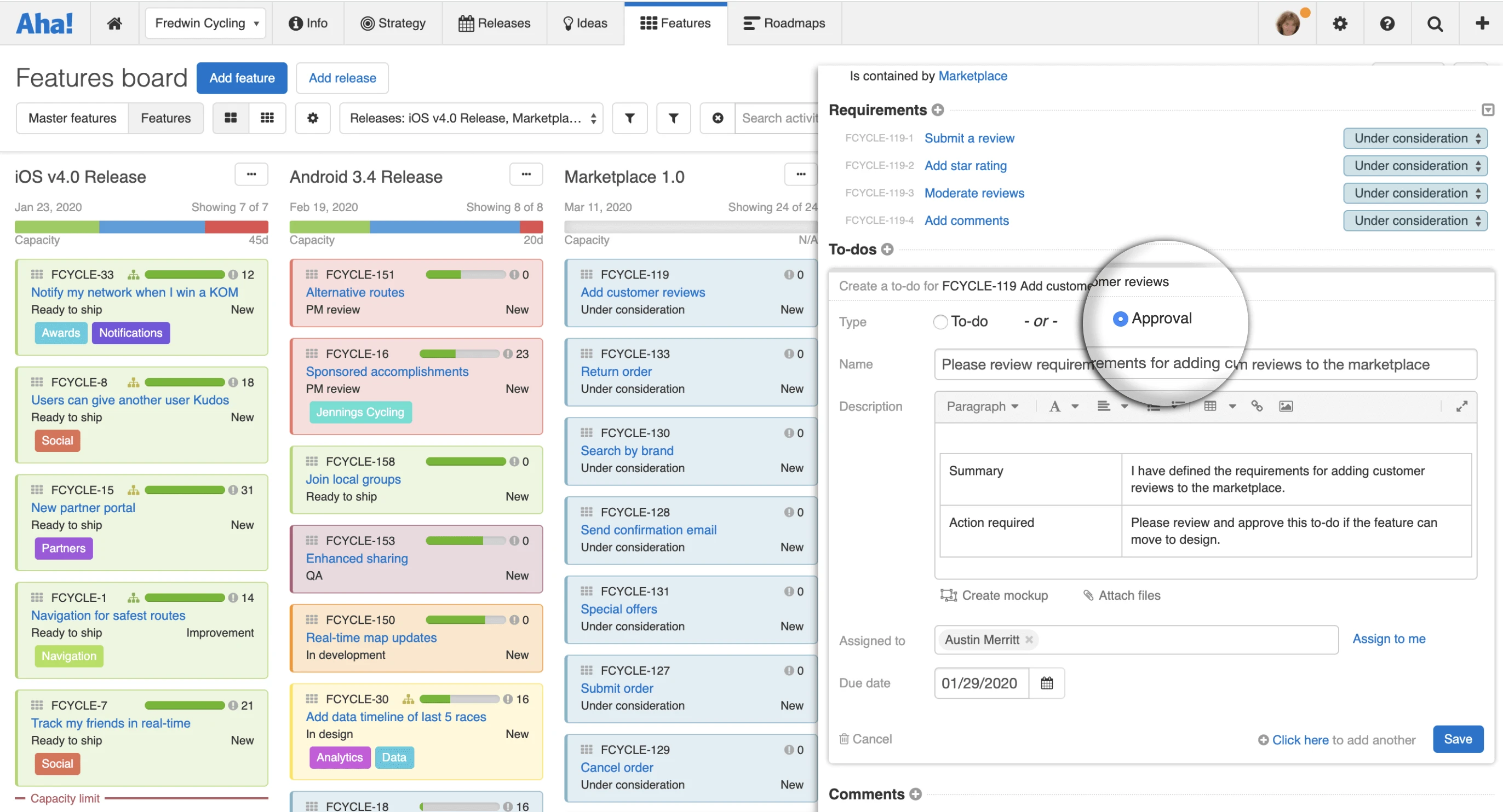 You can now assign approval tasks and due dates as part of your workflow in Aha!