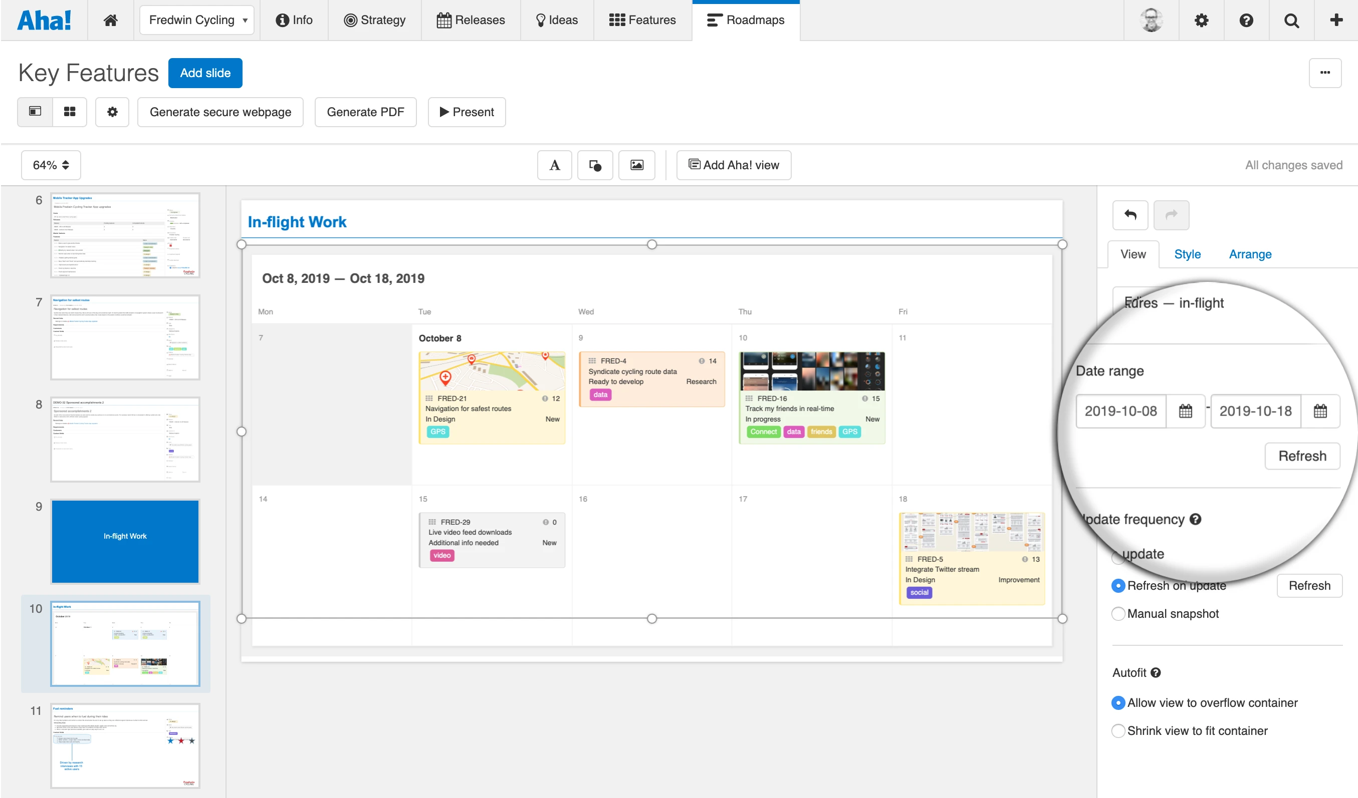 Sharing the right information with the right audience is all about perspective. There are times when you want to show all the details and other times when you just need the highlights. As you pull everything together in an Aha! presentation, that artform (like most) requires creative thinking and flexible tools.