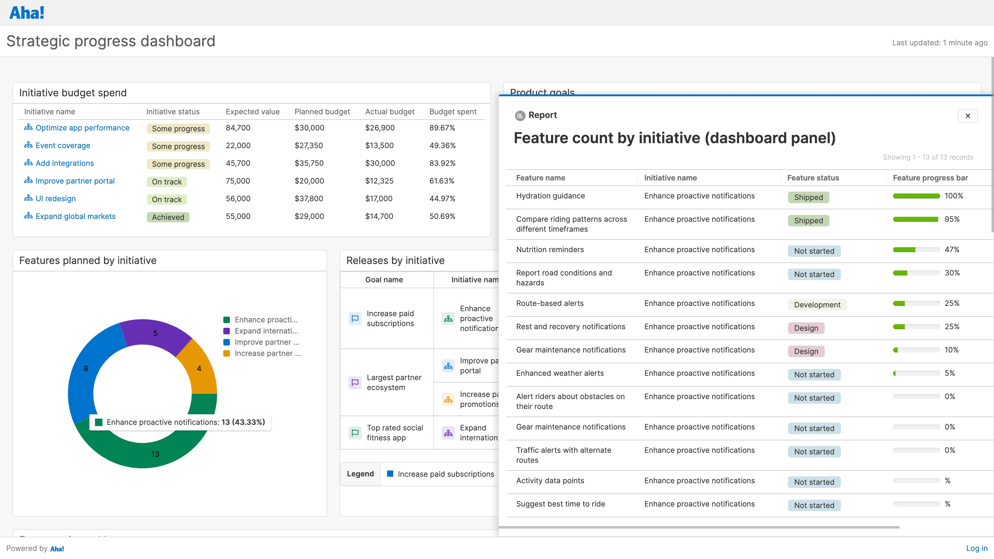 Keeping stakeholders informed is a constant challenge for product managers. Plans evolve, priorities shift, and new questions arise. Shared webpages in Aha! Roadmaps have long been a simple way to share up-to-date product information with people outside your account. Now, we are making it even easier for these folks to find the answers they need — with the ability to drill into the data behind your charts.