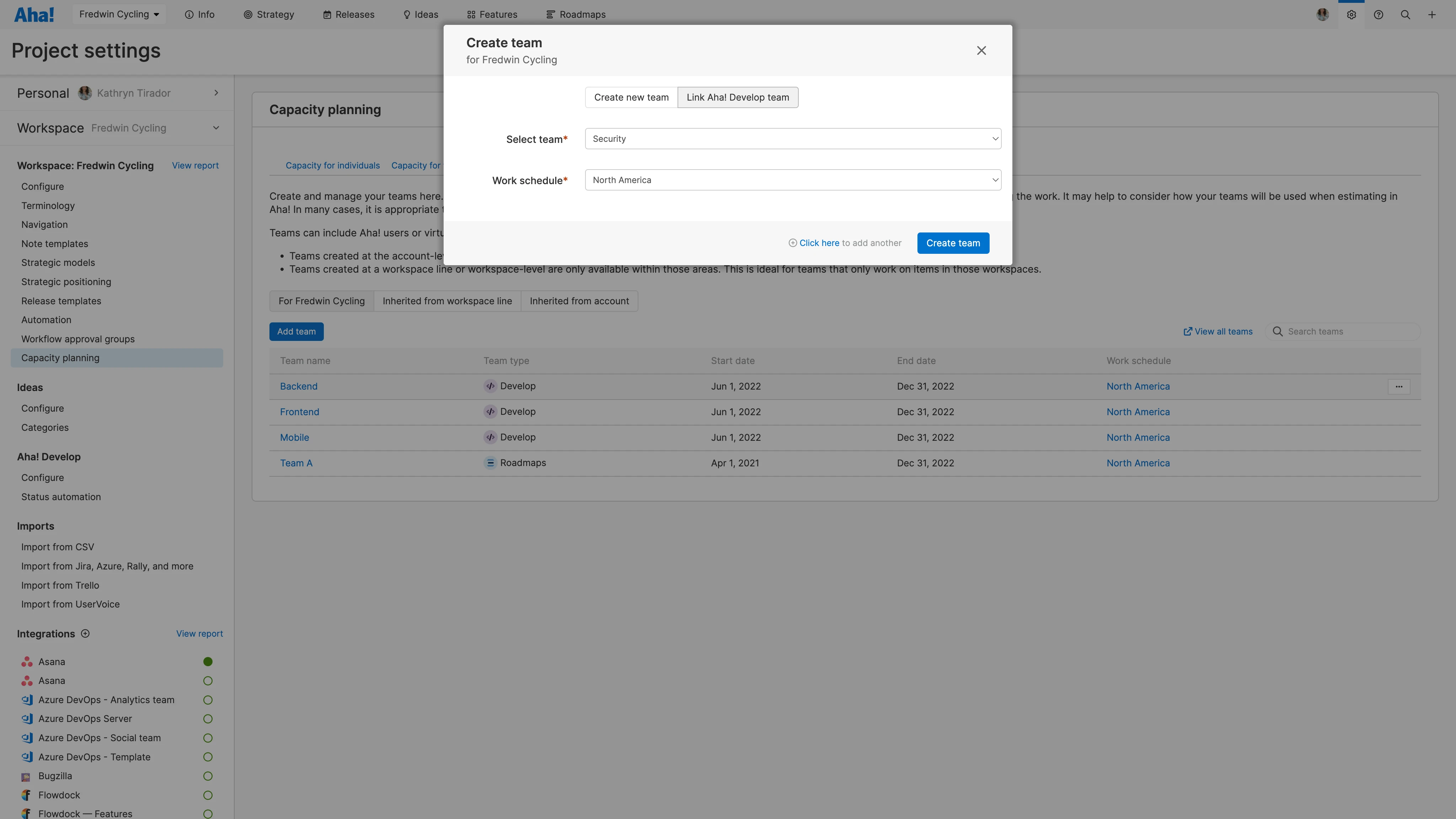 Once linked, any new members added to a team in Aha! Develop will automatically be added to the team in your capacity planning settings.