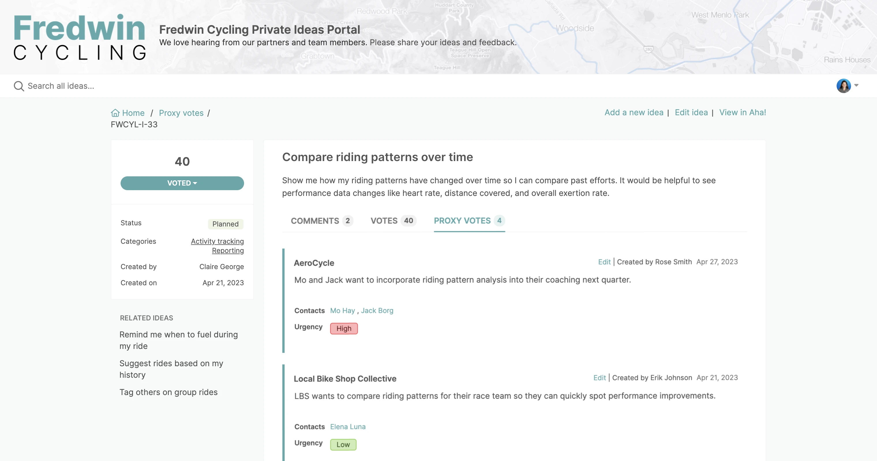 Give internal teams complete visibility into the proxy votes submitted on behalf of customers — available now in Aha! Ideas Advanced.