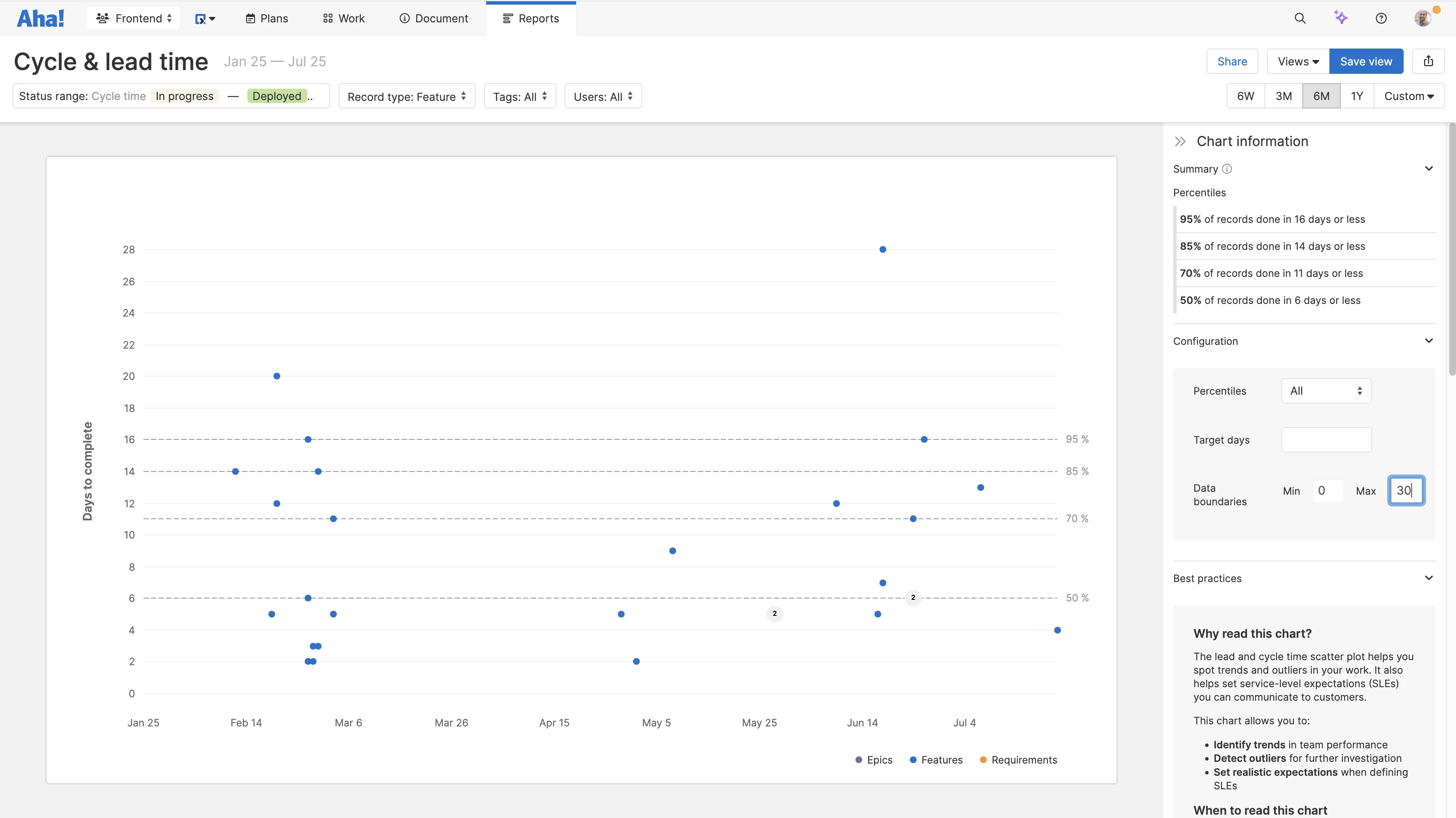 Use the improved cycle and lead time report to estimate work more accurately — now available in Aha! Teamwork and Aha! Develop.