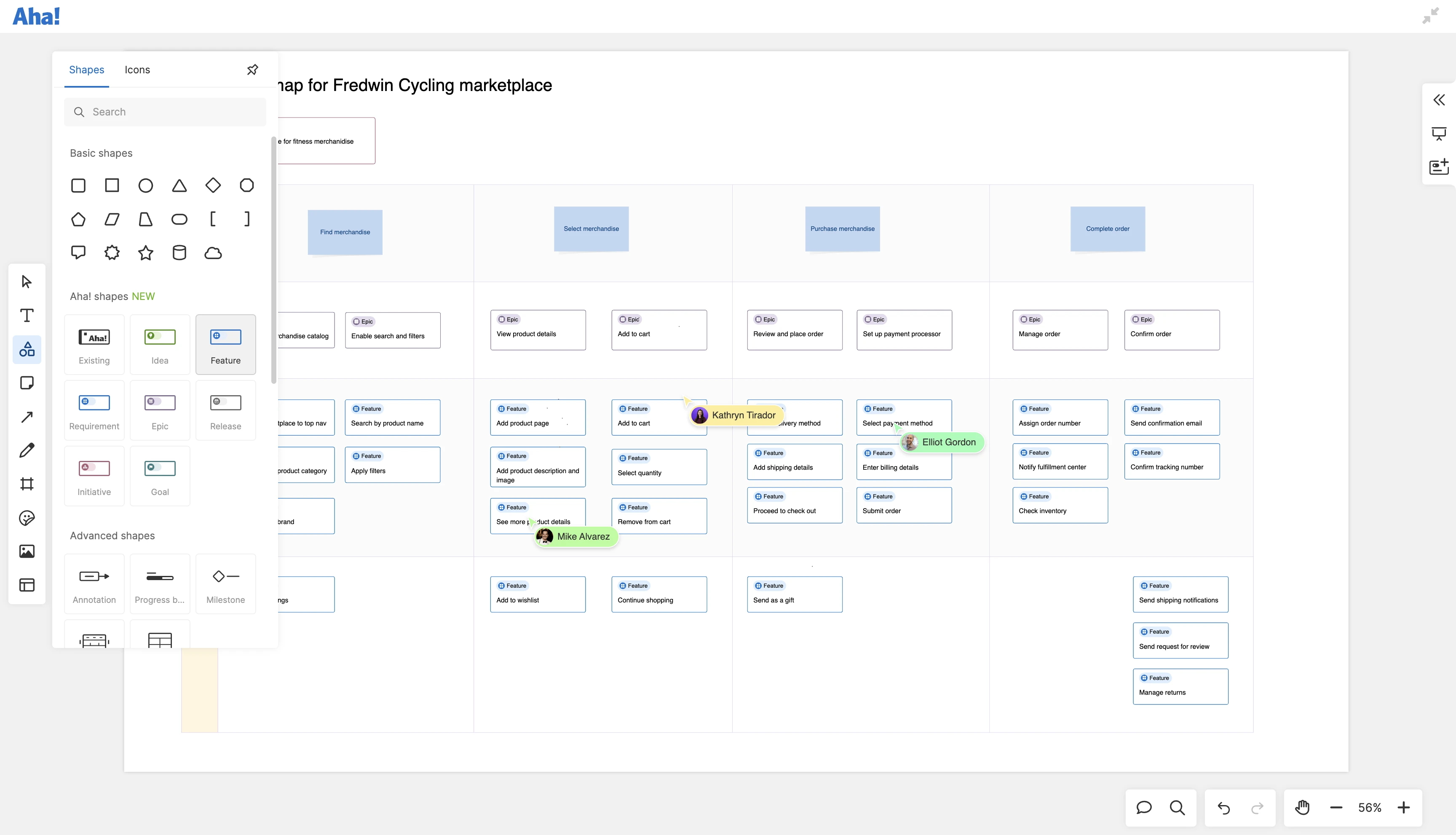 Aha! shapes are now available in all Aha! products. If you have a standalone Aha! Whiteboards or Aha! Knowledge account, try using whiteboards as part of Aha! Roadmaps, Aha! Ideas, or Aha! Develop to go seamlessly from concept to actionable plan.