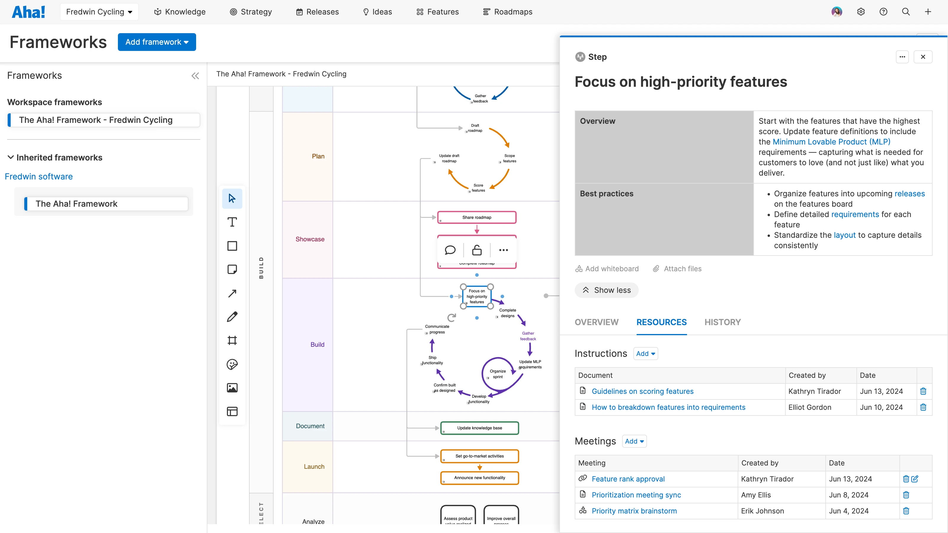 Each step of The Aha! Framework contains an overview and best practices. Links to helpful articles provide more guidance and information.