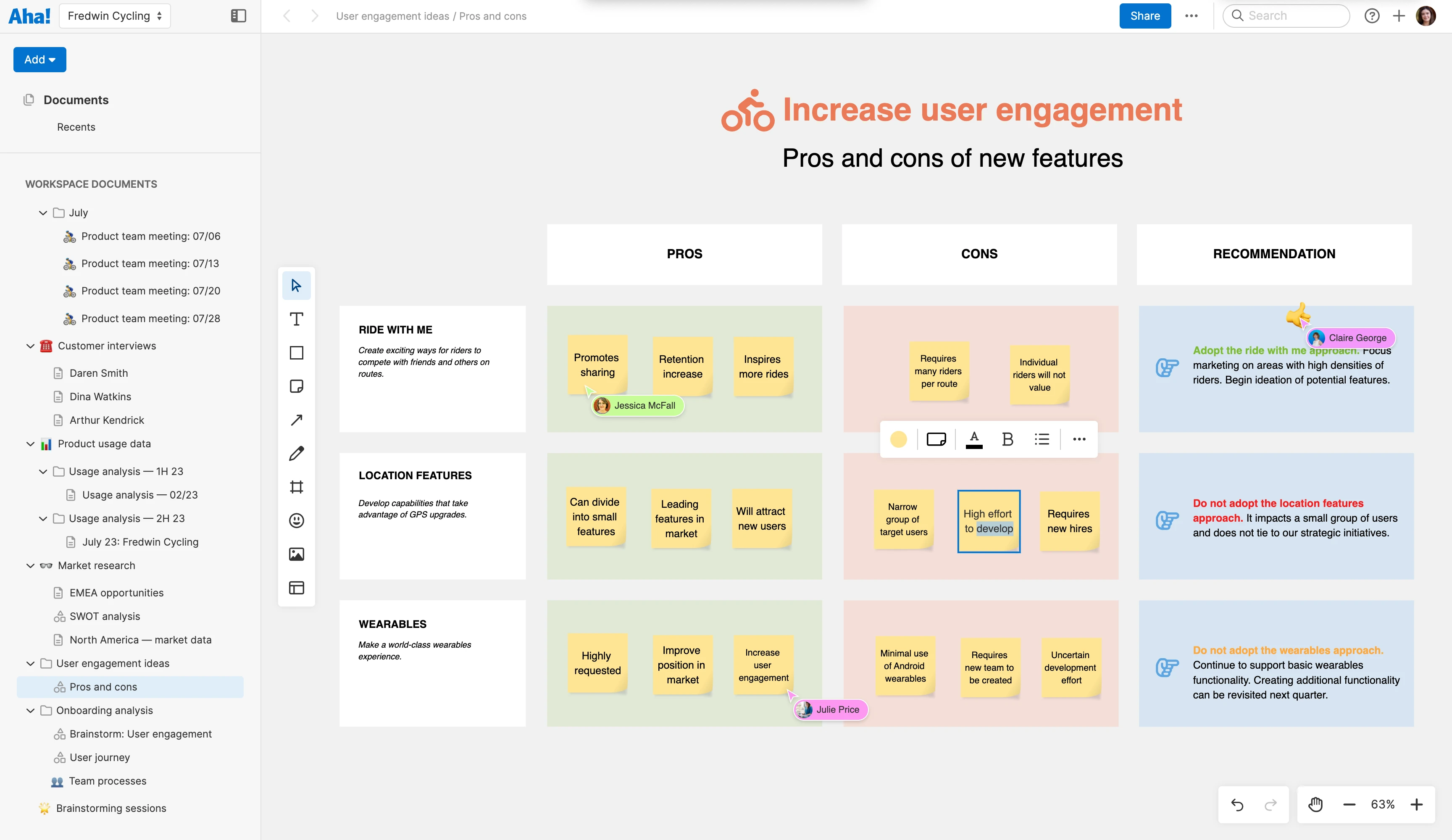 Aha! Notebooks is the new way to create beautiful documents and whiteboards. It also includes the ability to manage personal to-dos and share documents with anyone. If you are interested in integrating your brainstorming and structured planning workflows, sign up for a free 30-day trial of Aha! Roadmaps. Join a live demo to see why more than 700,000 product builders trust our software to build lovable products and be happy doing it.