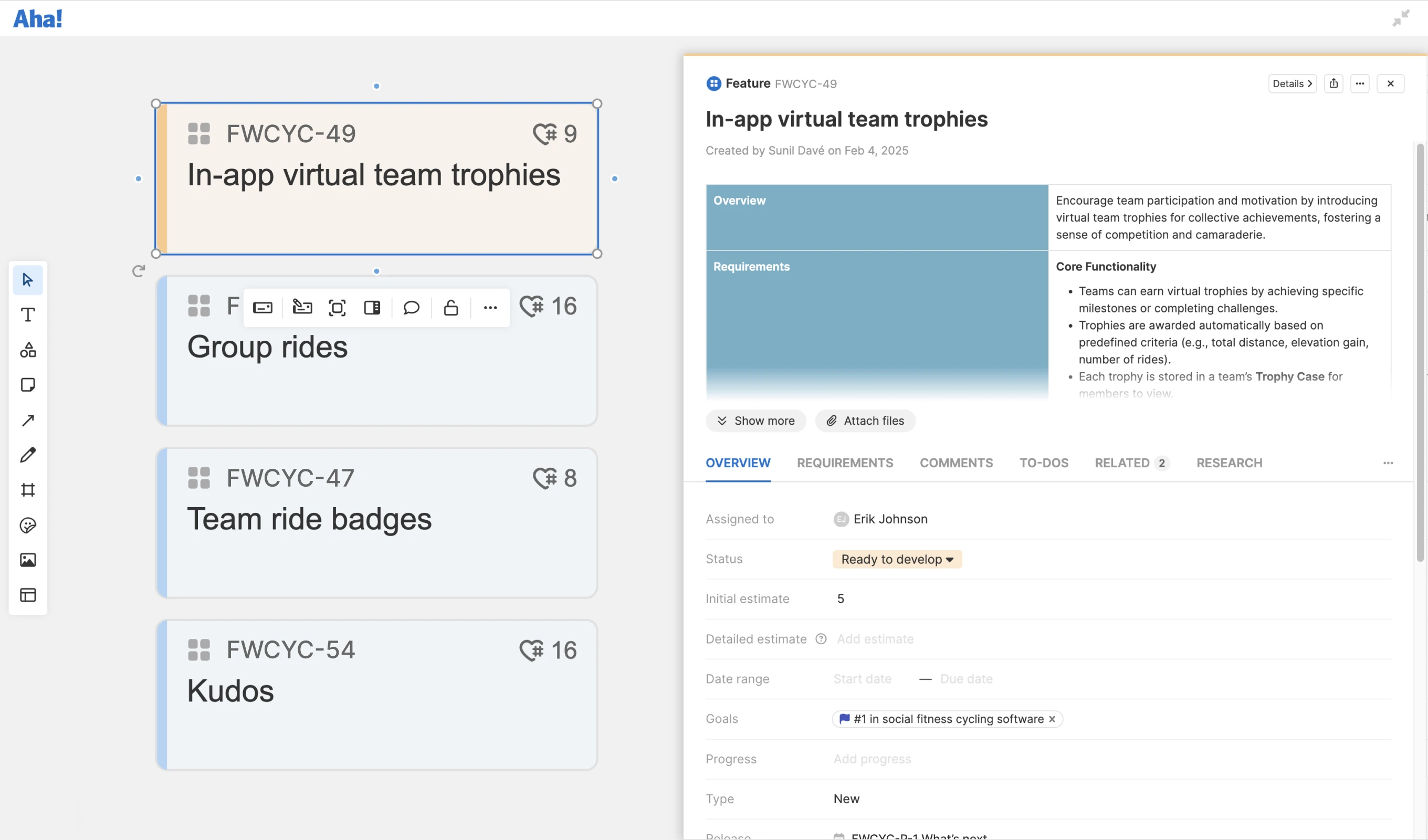 Run planning poker sessions on whiteboards in Aha! software to make estimation faster, more collaborative, and highly engaging.
