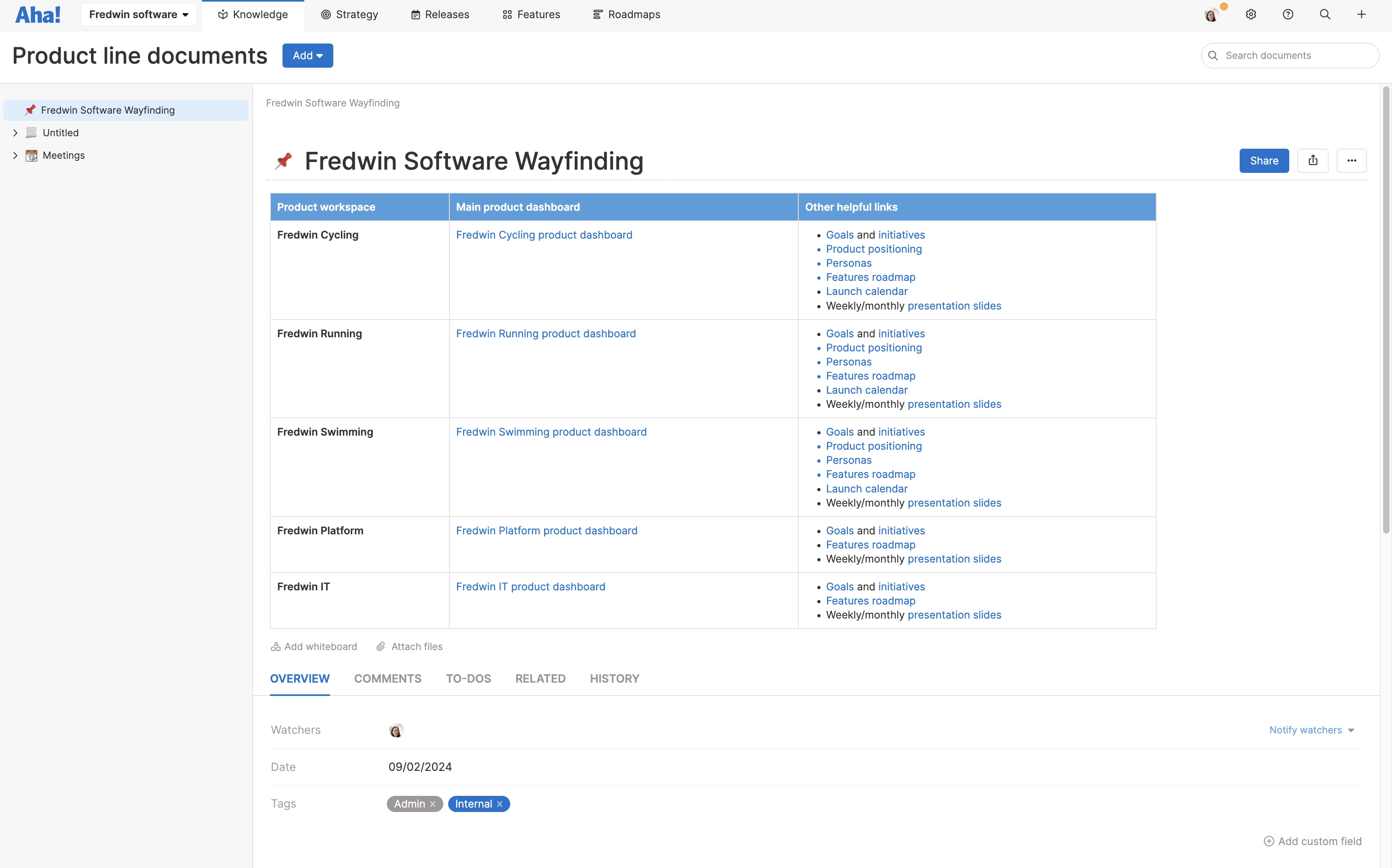 Not sure which page to set as the default? We use an Aha! Roadmaps account for Fredwin Software, a fictitious company, to go through a few ideas.
