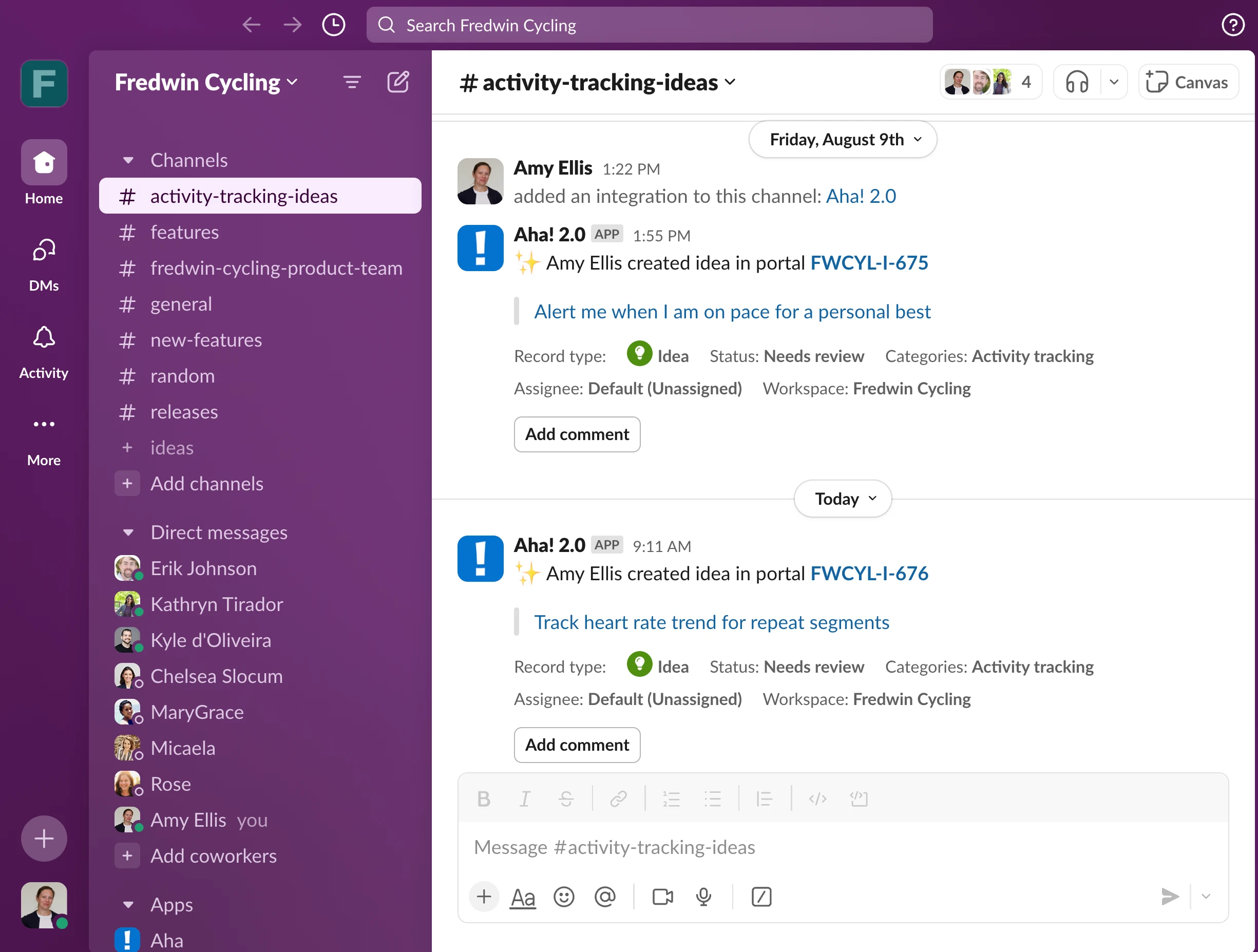 As part of this update, we also made notifications easier to read in Slack. The team can quickly scan the details before opening the record in your Aha! account.