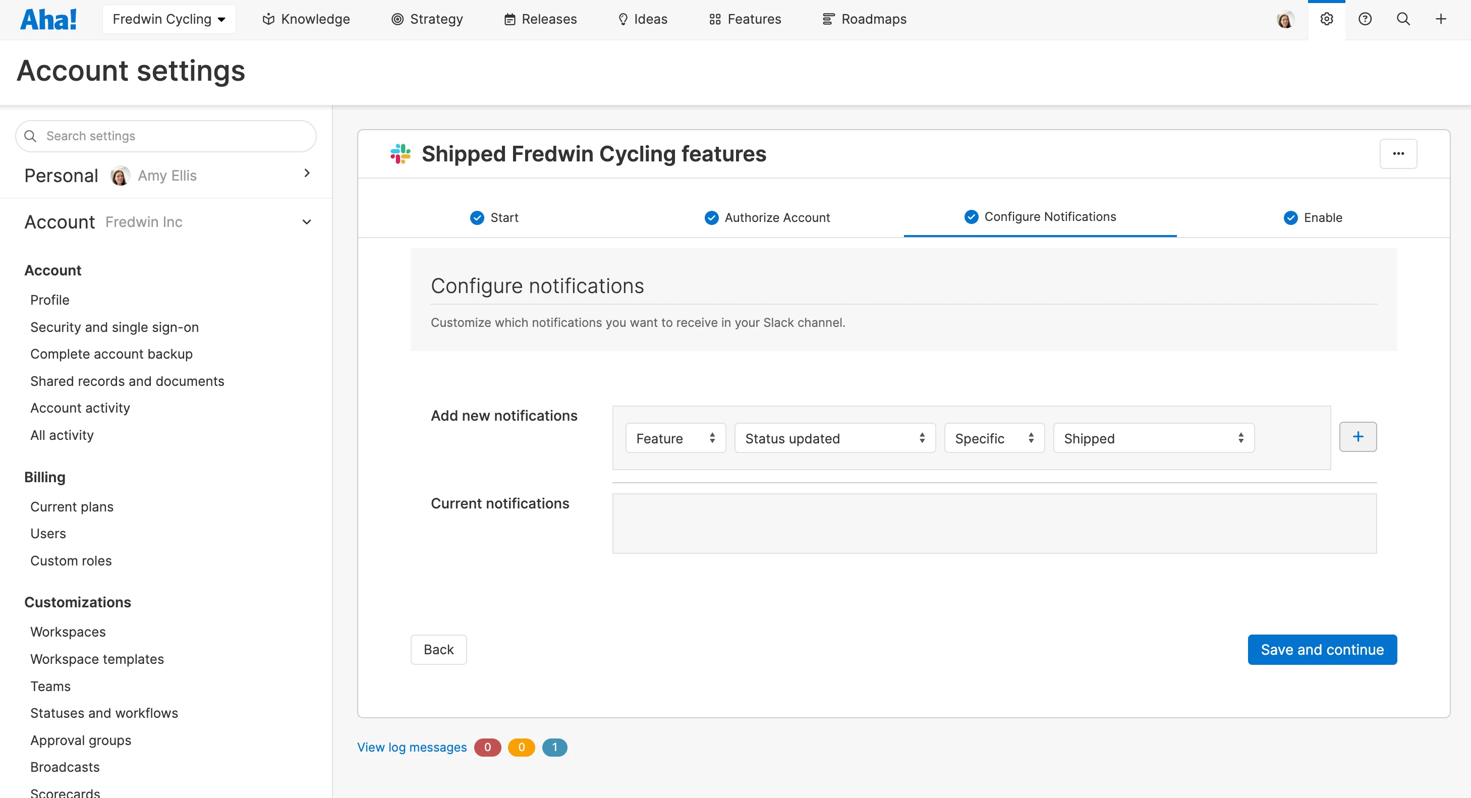 To get started, install the new Aha! to Slack integration at the account or workspace level. You can then select your Slack channel and configure notifications. For example, you can get a notification only when a new idea is submitted or get feature updates only when new functionality actually ships.