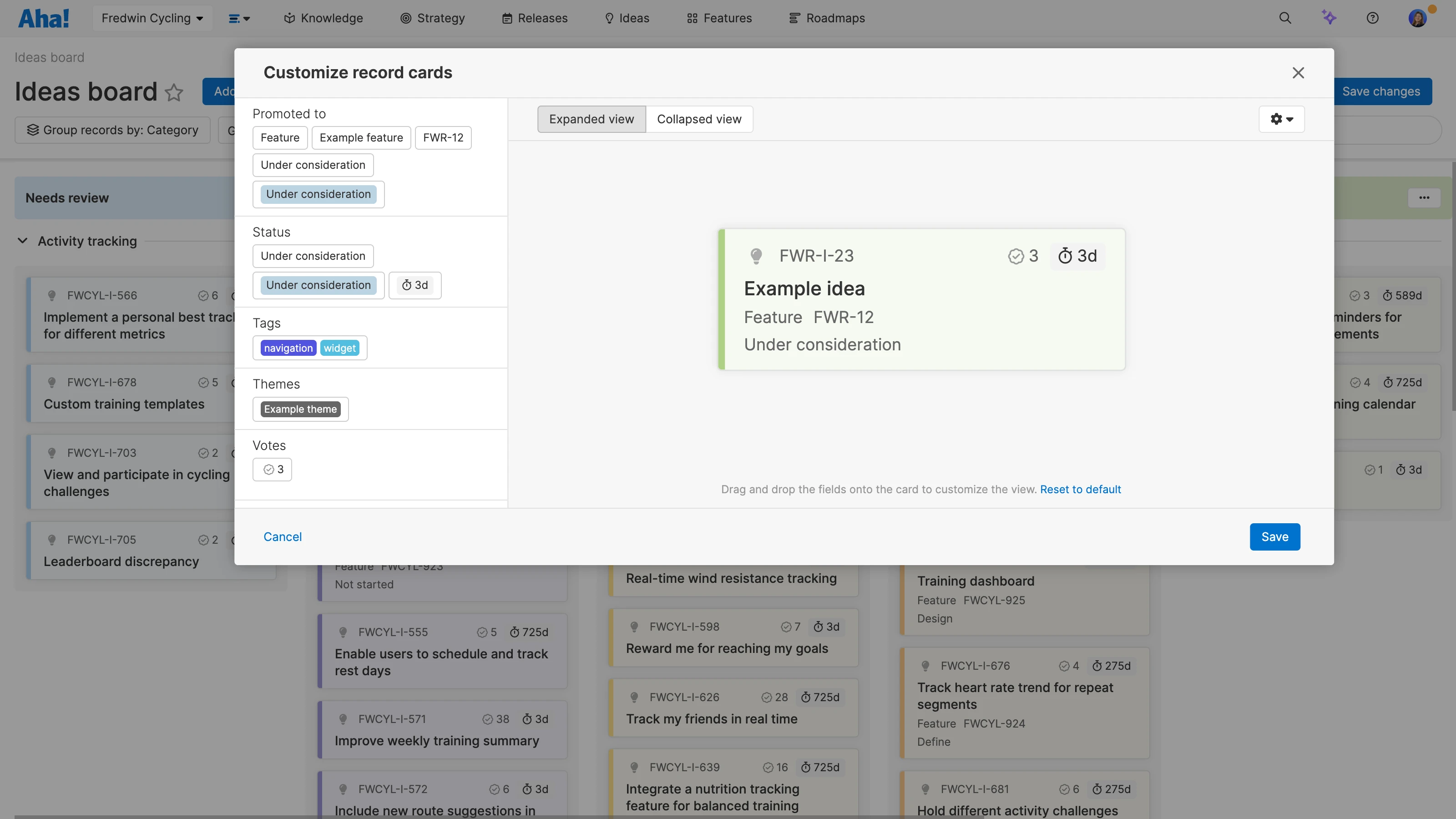 Keep customers in the loop. Promote top ideas into features, epics, or initiatives. Then, add the Promoted record status field to your cards so you can track progress at a glance. Once the work ships, linked ideas automatically update — notifying customers that their requests are complete.