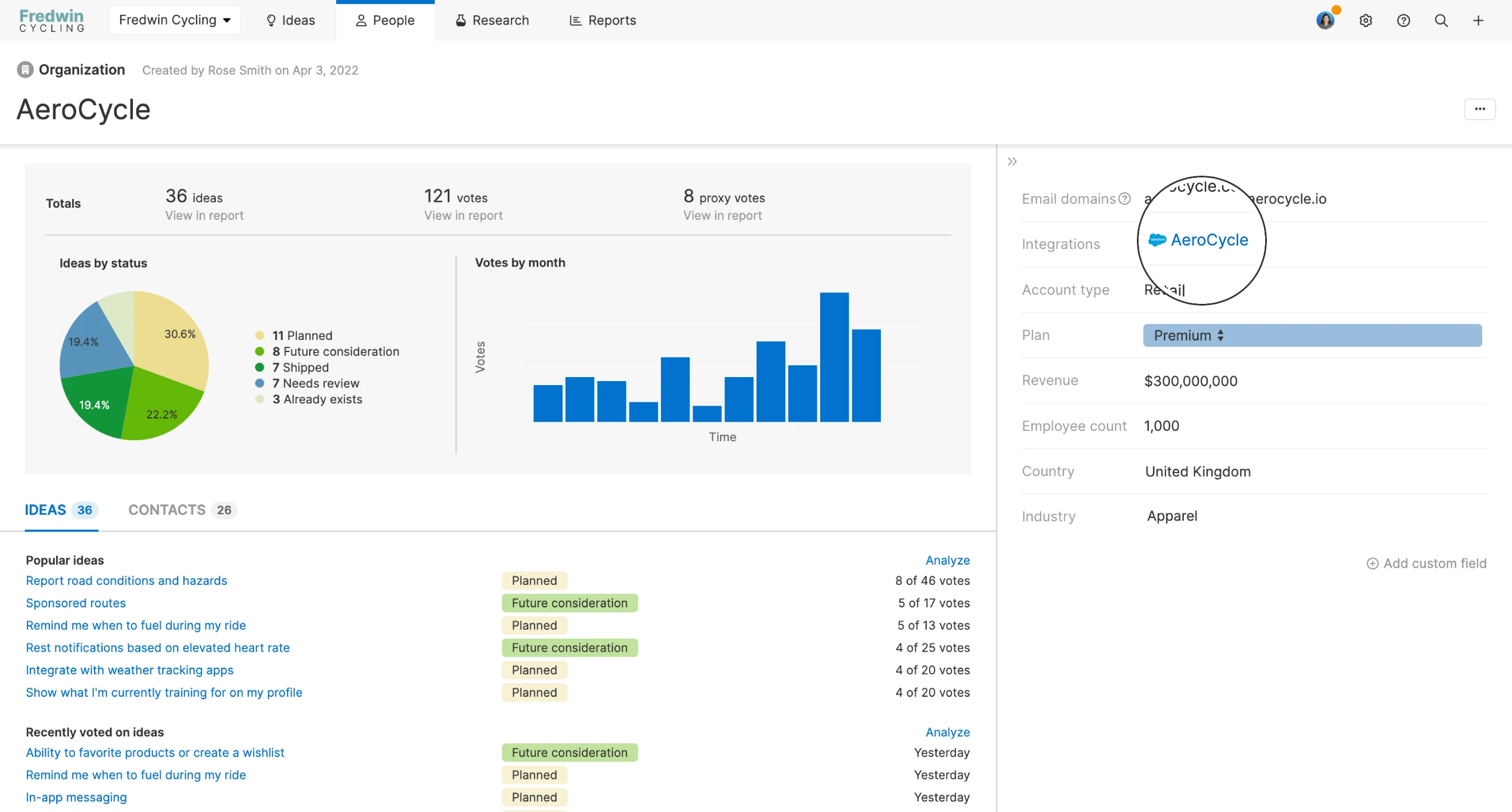To what degree do you really know your customers? You speak with them and ask them to submit their feedback in an ideas portal. And you likely collect some details about them in a CRM like Salesforce. But you need to bring that information together in one place to get a fuller story of who they are and what they want. Our enhanced Salesforce integration lets you to do exactly that.