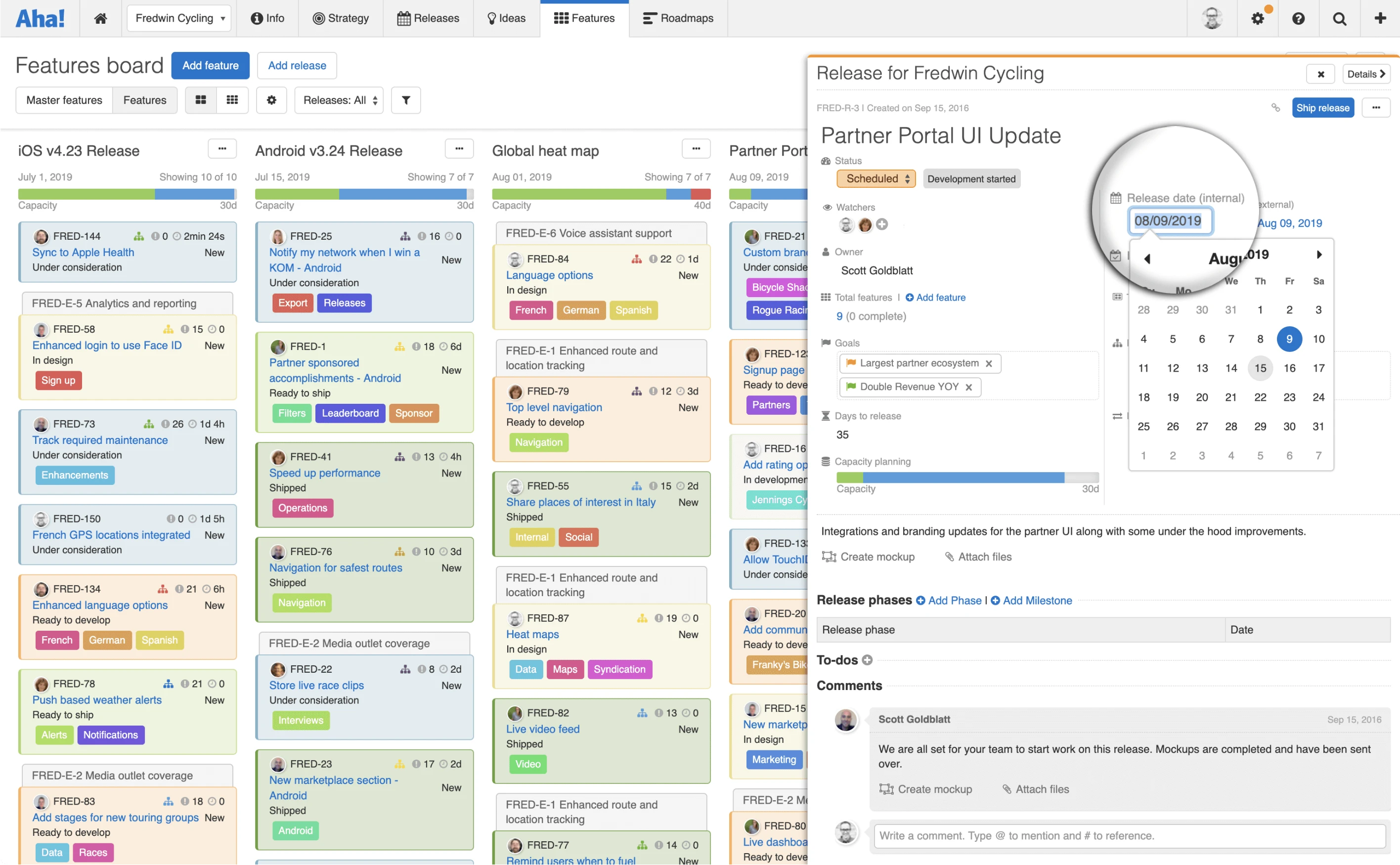 Aha! releases now sync with Rally milestones — automatic updates that will keep everyone aligned on the latest deployment schedule.