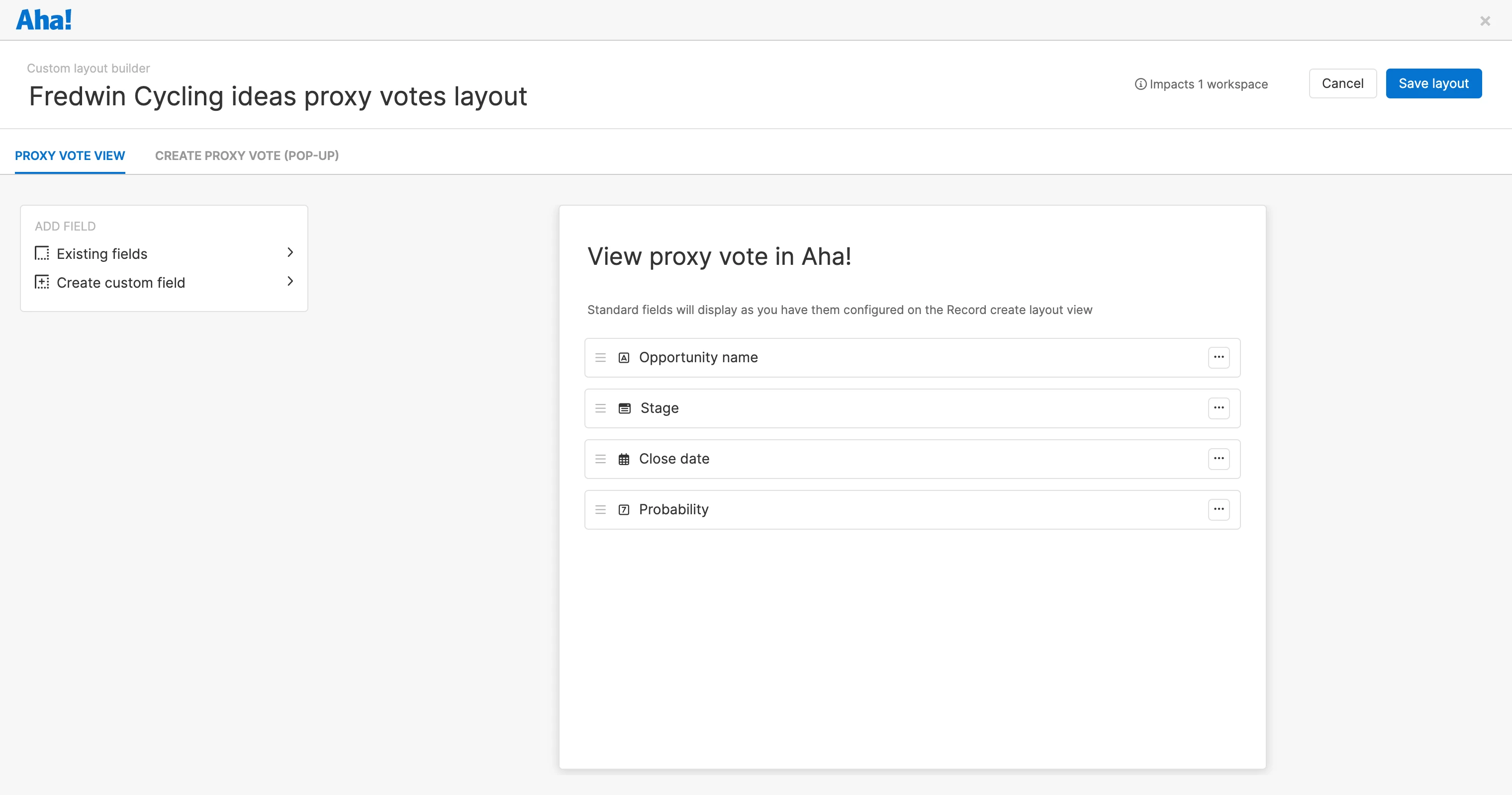 Be sure to choose the layout for proxy votes in Aha! Ideas — there is also a separate proxy vote layout for the ideas portal itself.
