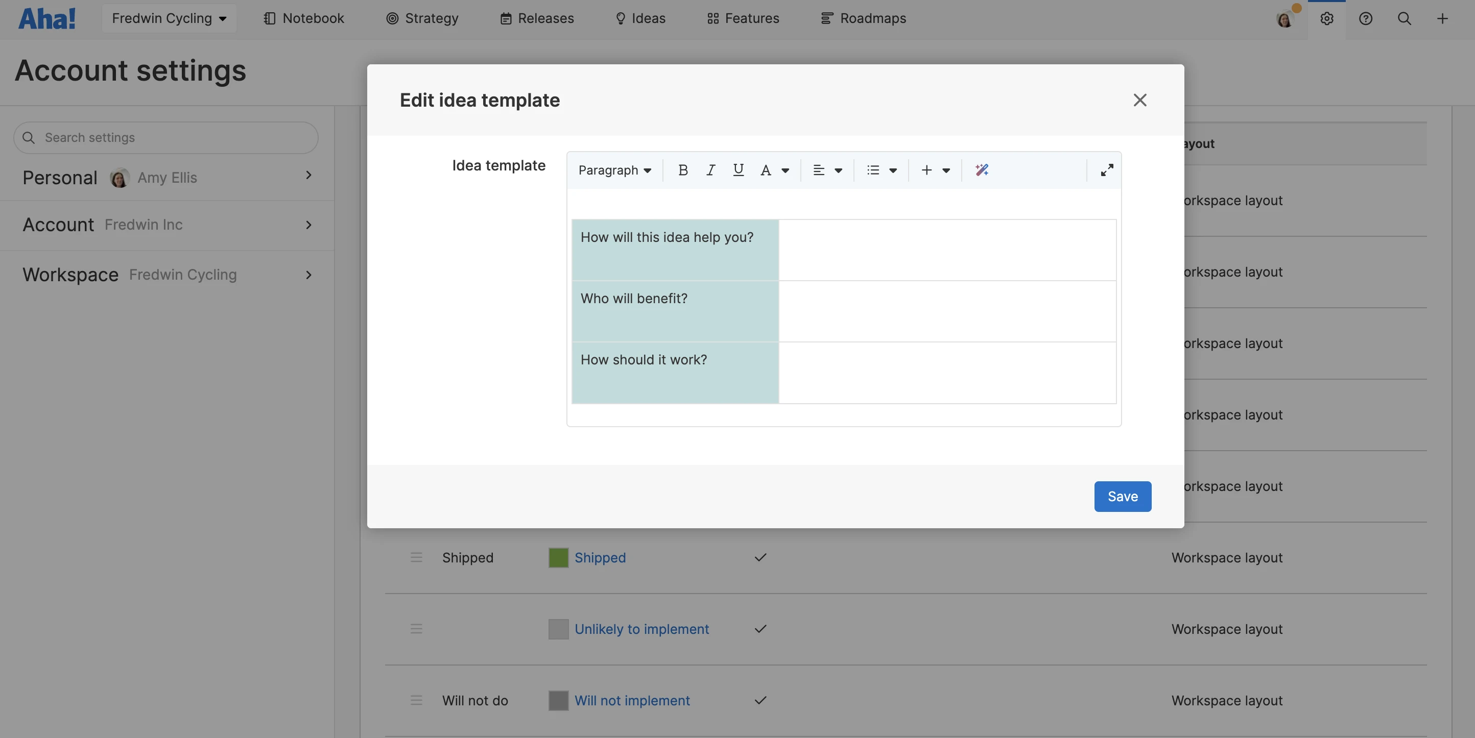 Your idea description template will also work for ideas submitted via the Salesforce integration and within a dynamic form — further streamlining where and how users can share feedback.