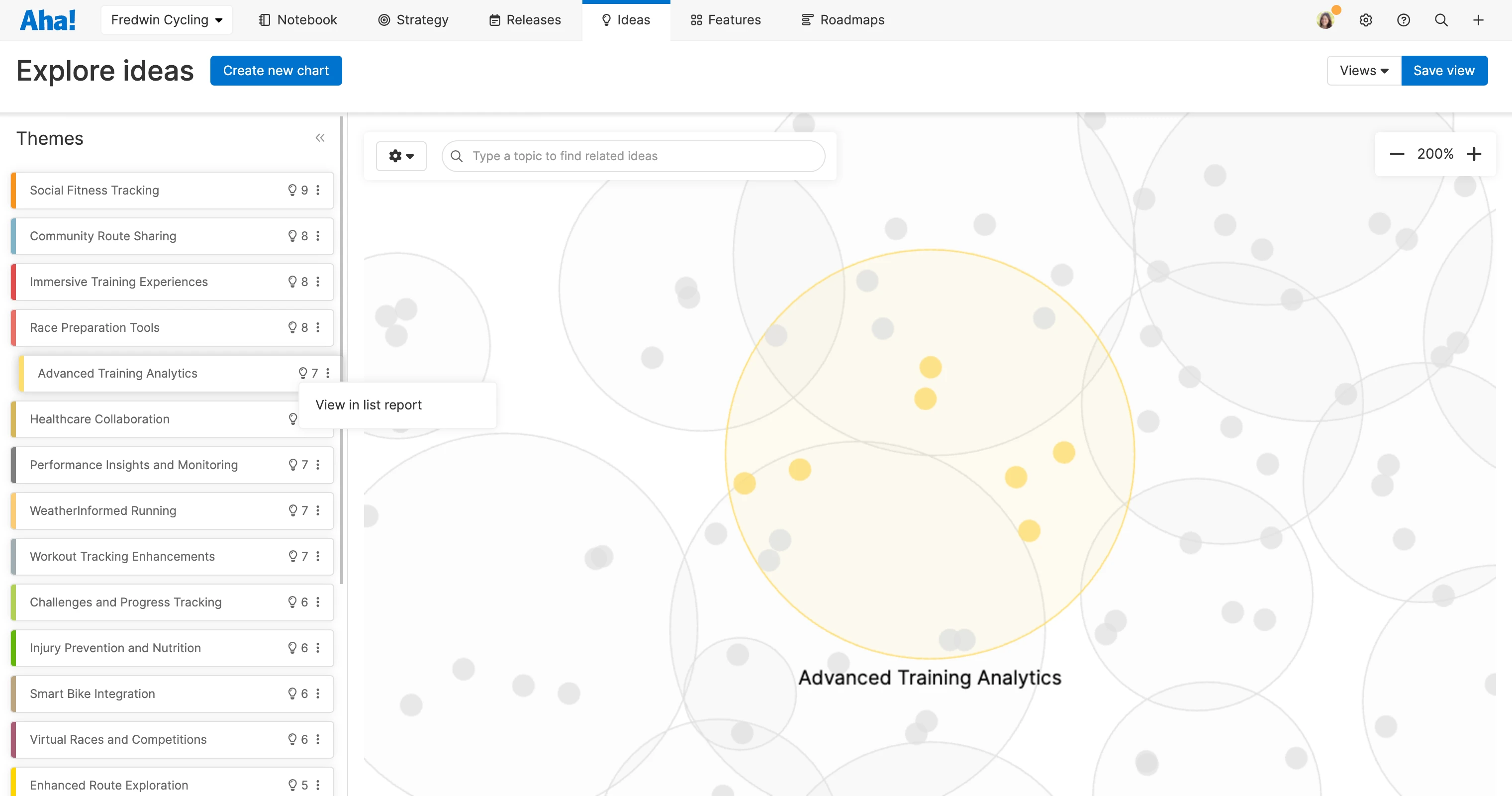 "It feels like magic!" A customer told us this after trying the new AI exploration tool in Aha! Ideas Advanced. This innovative new functionality lets you quickly analyze all ideas that have been submitted to your portal. Find ideas related to a specific topic, reveal feedback themes, and merge similar ideas.