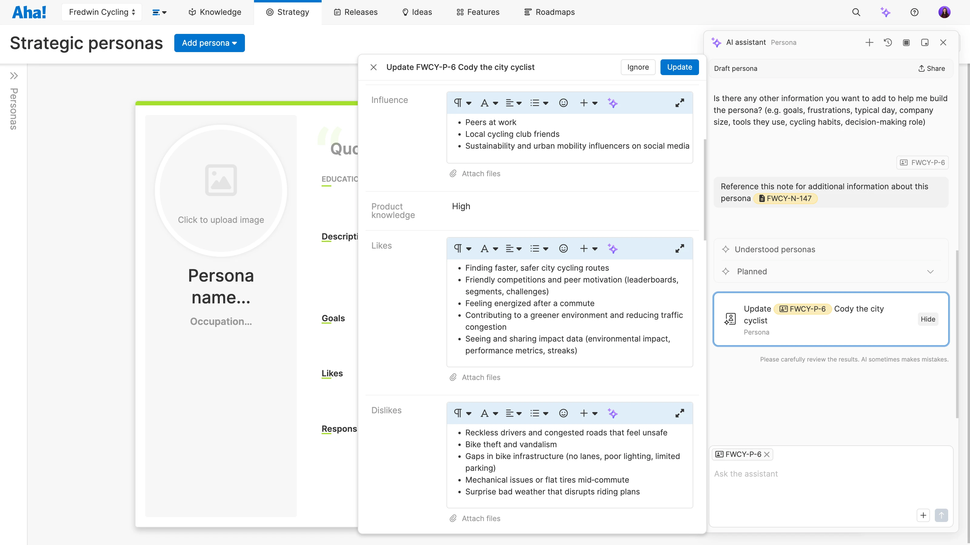 Use the Aha! AI assistant to draft strategic models, positioning, and personas