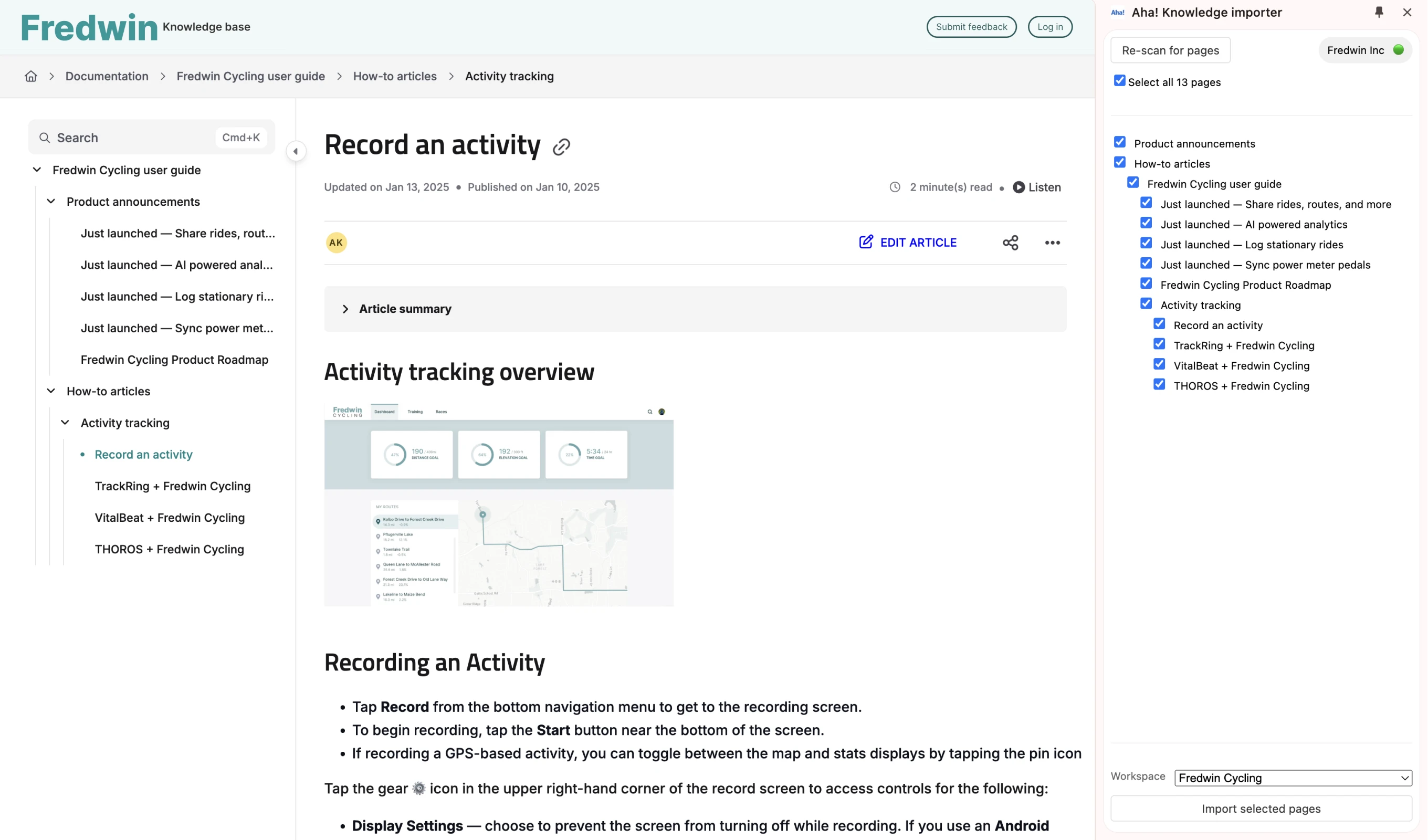 In the example below, we migrate a fictitious user guide from an existing web-based tool. Let's assume we already manage our internal product documentation in Aha! Knowledge, so consolidating customer-facing resources is the next step. After importing, we can now share the user guide with customers on a public knowledge base.