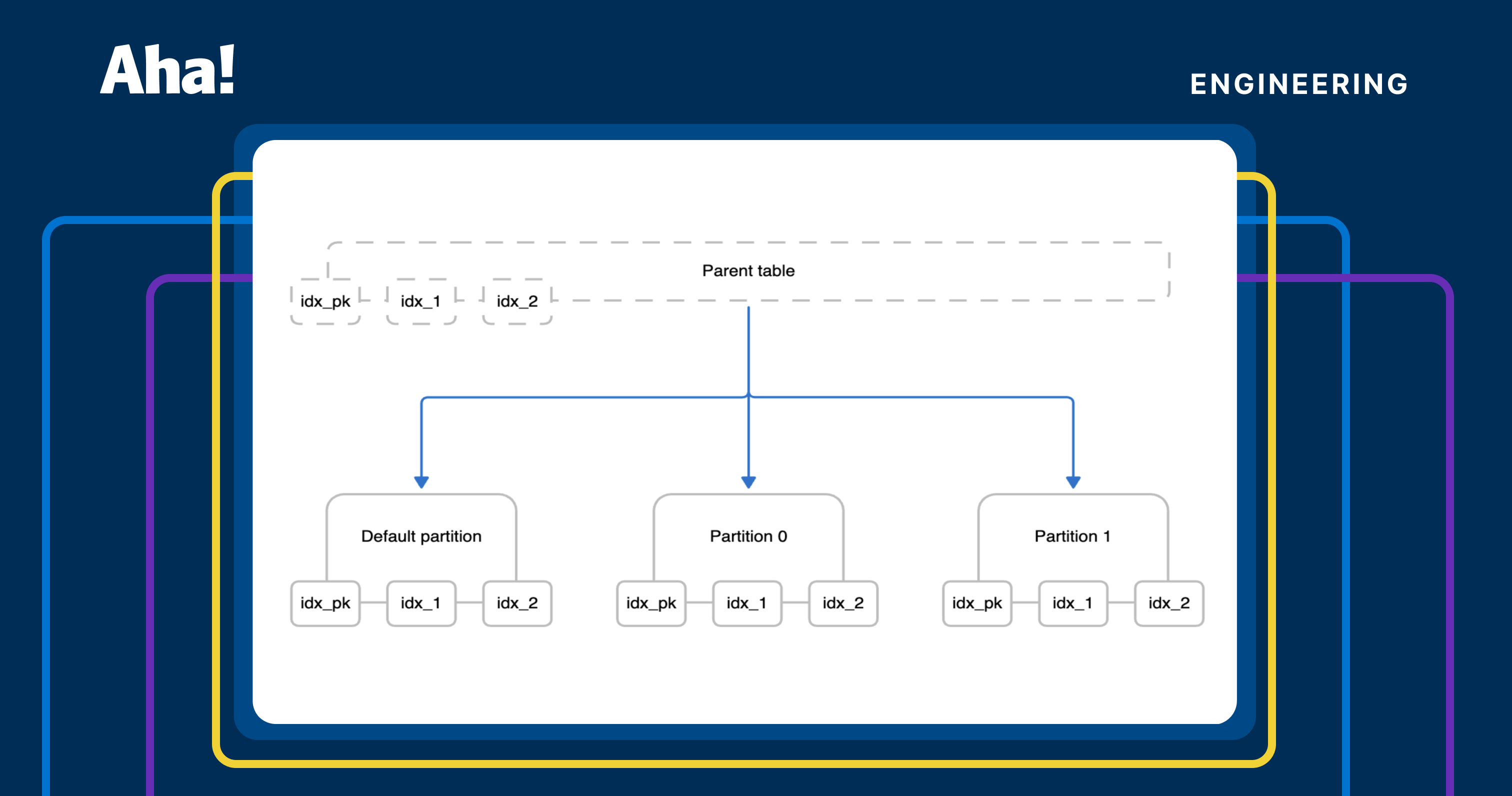 When a table grows too large to manage efficiently, partitioning helps by splitting it into smaller, more manageable pieces. From the application's perspective, it still behaves like a single logical table. But it's divided into multiple physical partitions behind the scenes. Each partition stores a subset of the data and has its own indexes (which are virtually linked to the parent).