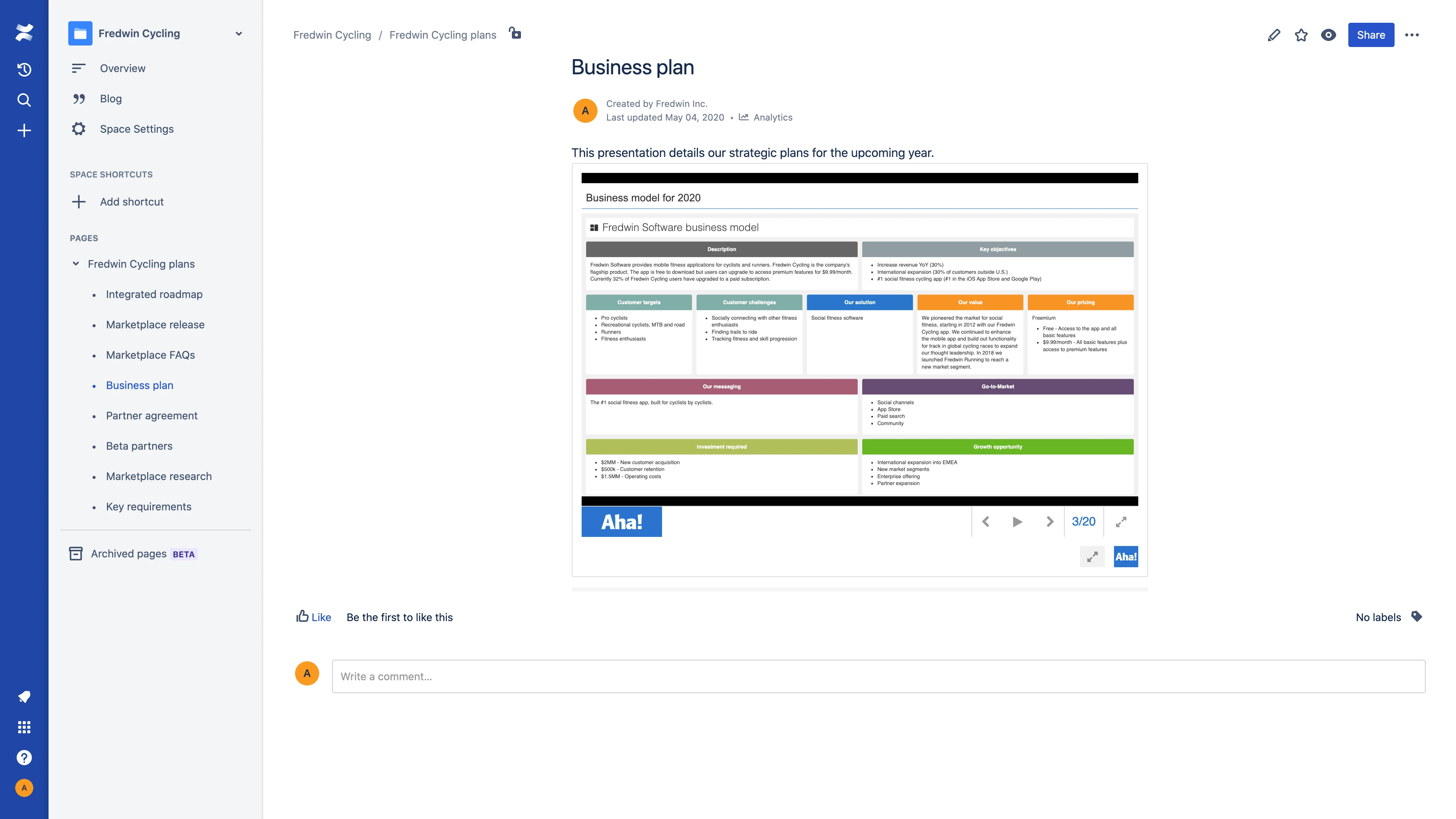 To set up the Confluence integration, you need to be an Aha! Roadmaps workspace owner. You will also need to be a Confluence account administrator with configuration permissions.