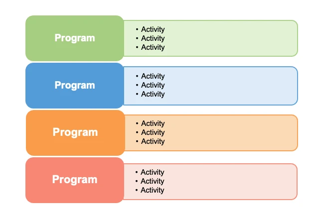 Schedules | Programs, campaigns, and events on a timeline that map to strategy. |