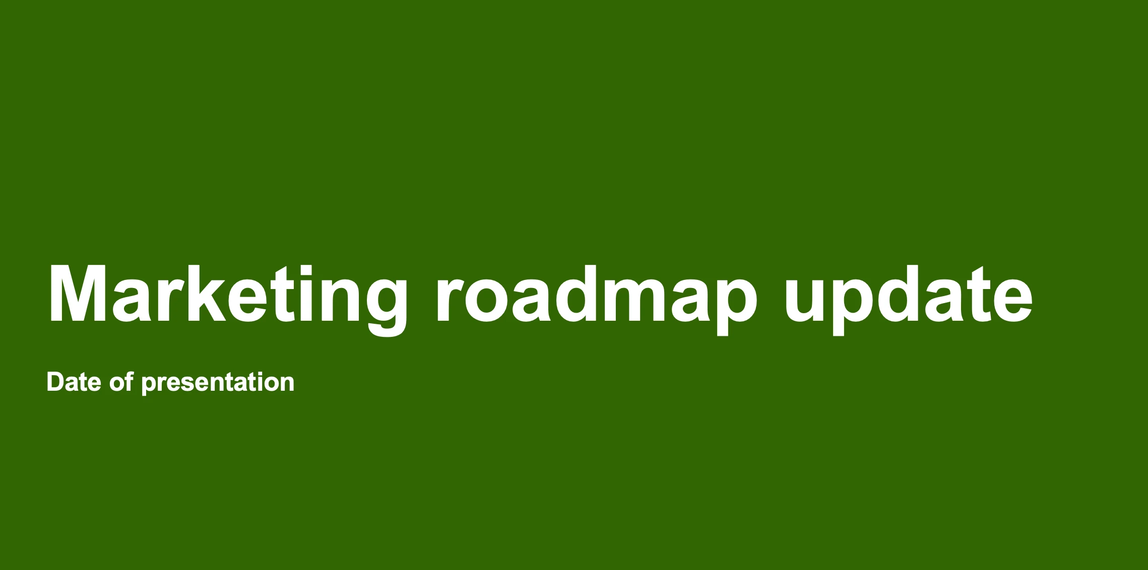 There is no such thing as a "one size fits all" presentation template. Each presentation should be created with a specific audience in mind. Start by identifying your audience. Then identify your goals, how you will tie the roadmap to the broader product vision, and which roadmaps you will share.