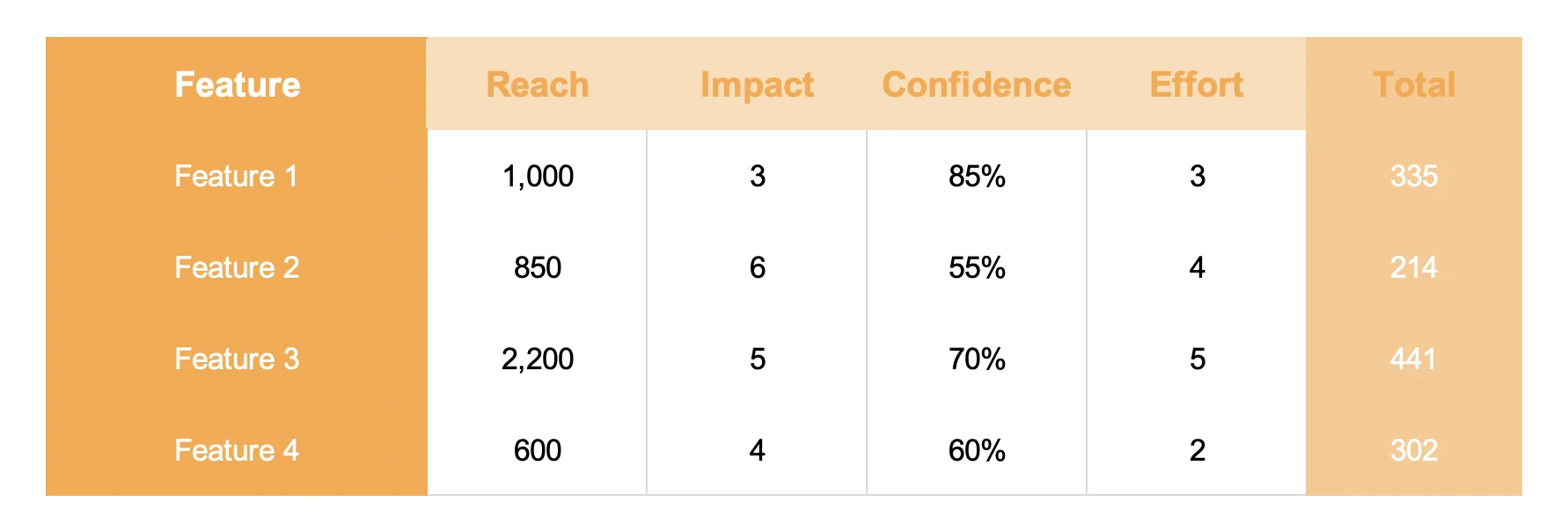 The RICE framework scores features based on Reach, Impact, Confidence, and Effort. It is another simple way to balance value against effort and minimize feature creep.