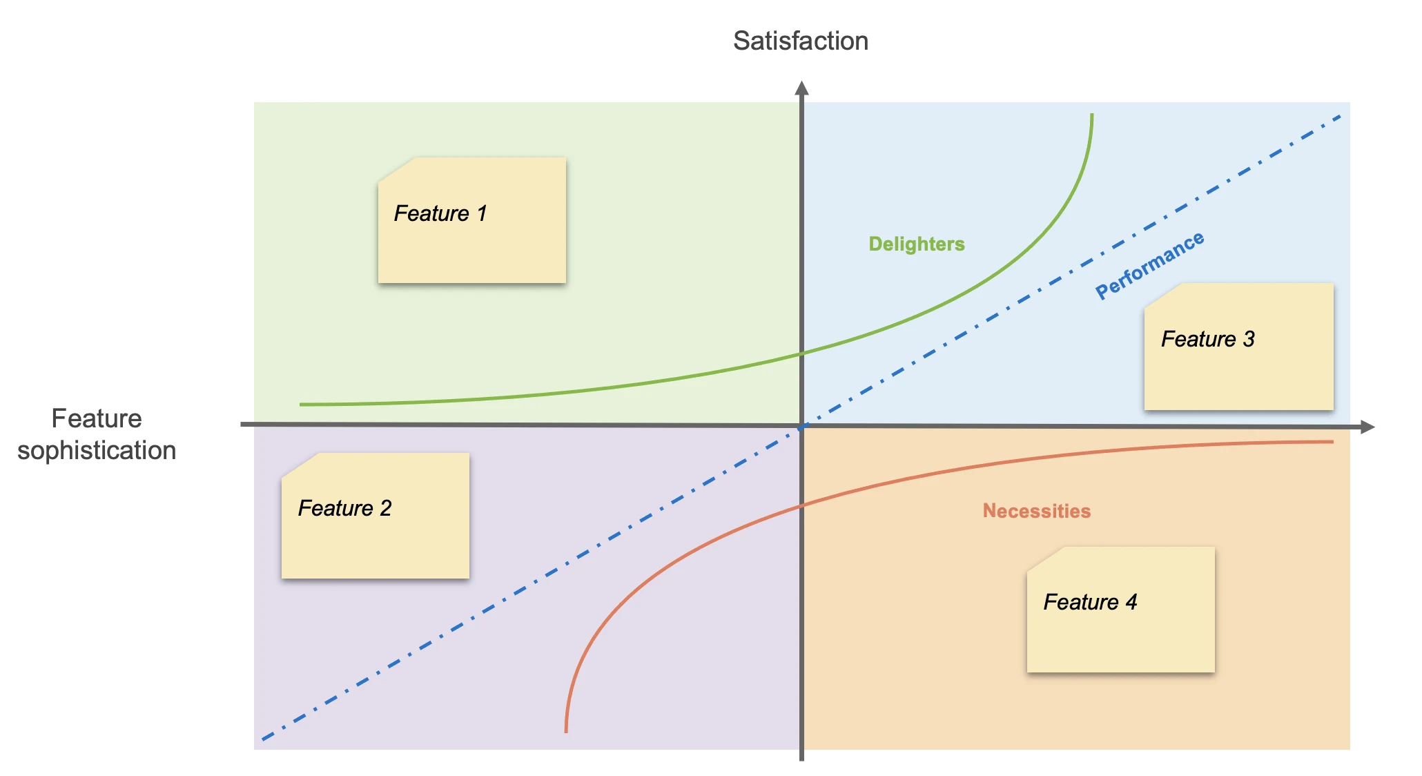 The Kano model weighs customer satisfaction with feature sophistication to determine what to build now and what to deprioritize. It is especially useful for teams that are bringing a new product to market and need to understand where to focus time and energy.
