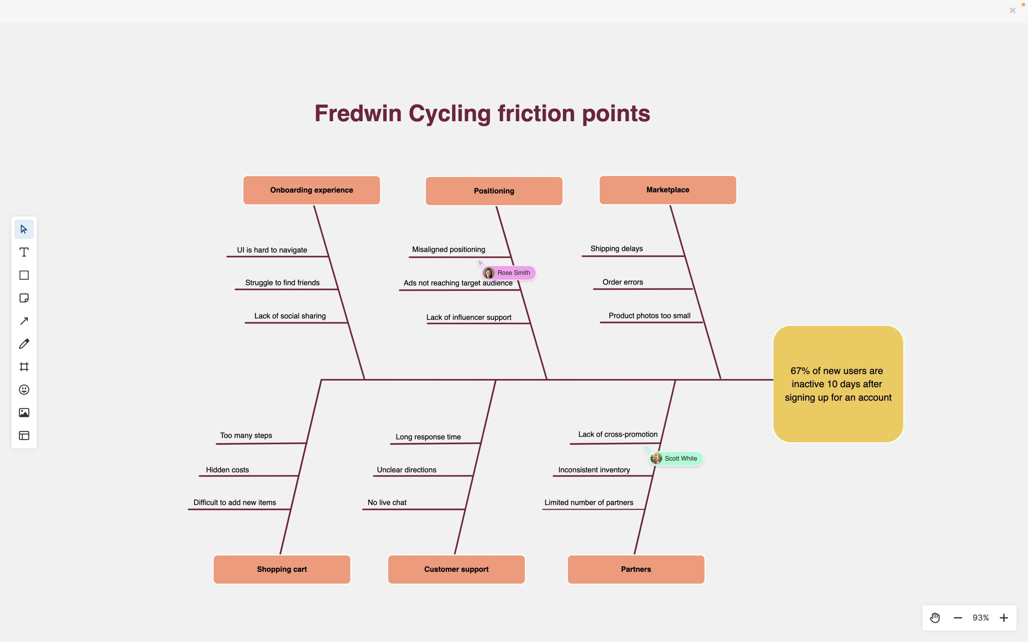 Visualize your thinking. Digital whiteboards are ideal for defining user flow diagrams, mapping customer journeys, or brainstorming new product experiences. Choose from a selection of templates for everything from sticky notes to mind maps. Or use shapes, frames, connectors, and other elements to create your own custom visuals. You can embed whiteboards in notes to bring both formats together.