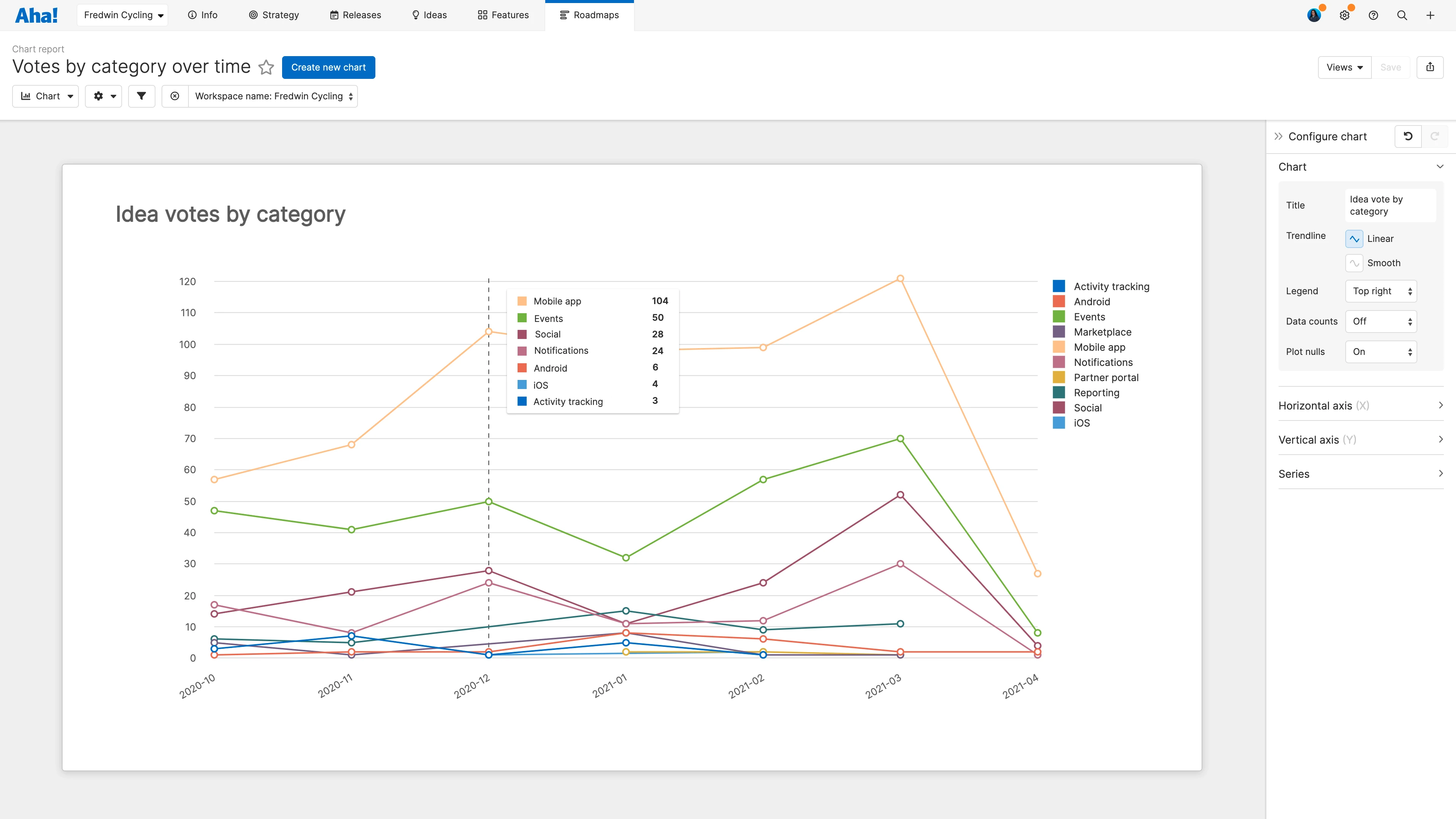For Aha! Ideas and Aha! Develop, navigate to Reports Chart